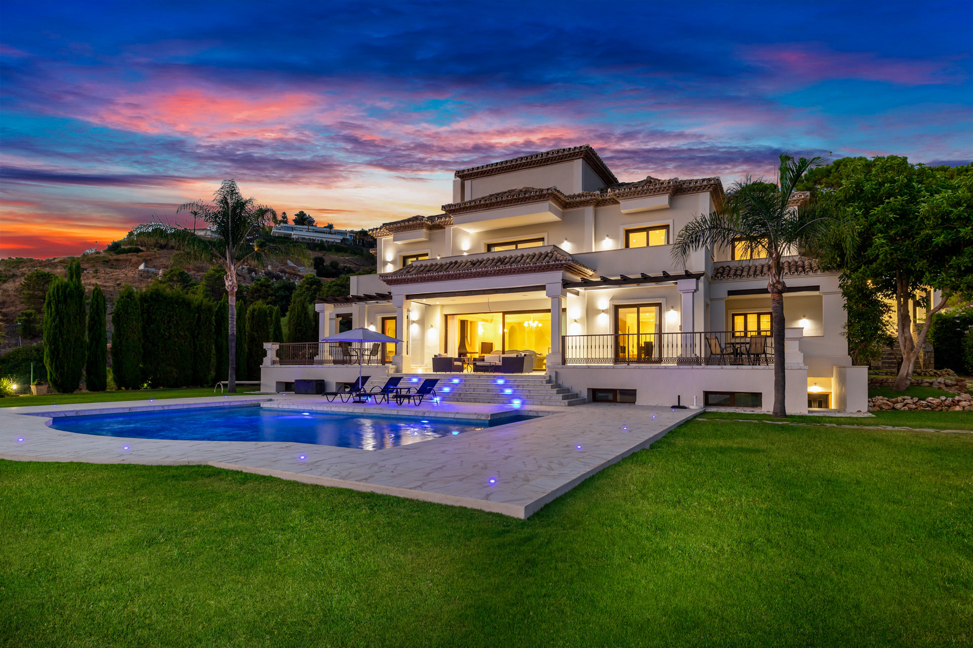 Casa de estilo tradicional muy bien situada en una ladera en el Club de Campo de Monte Mayor. Orientación sur-oeste con espectaculares vistas al mar y a la montaña. Totalmente privada y tranquila.