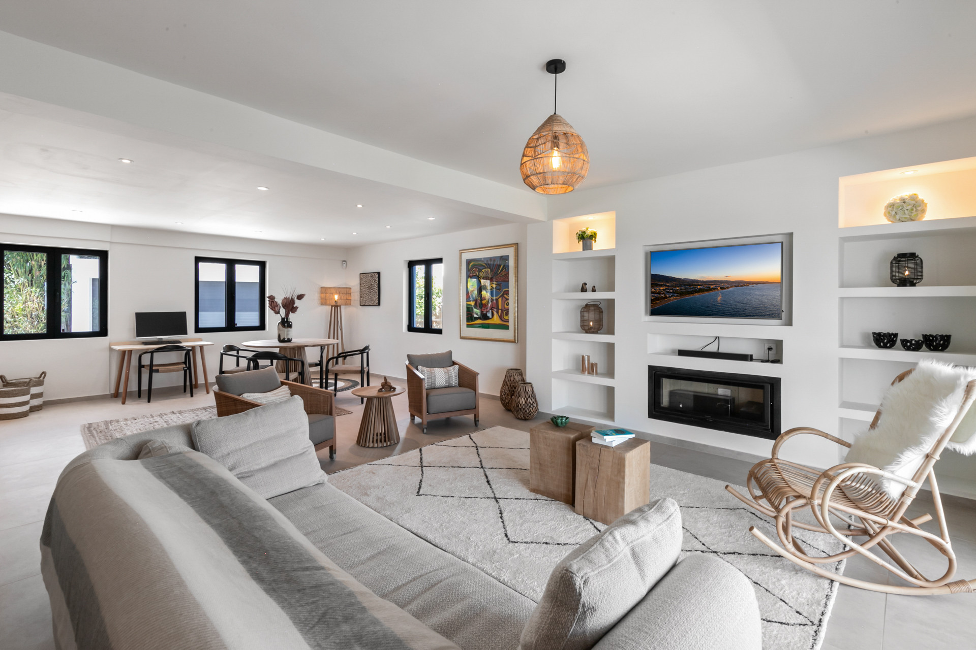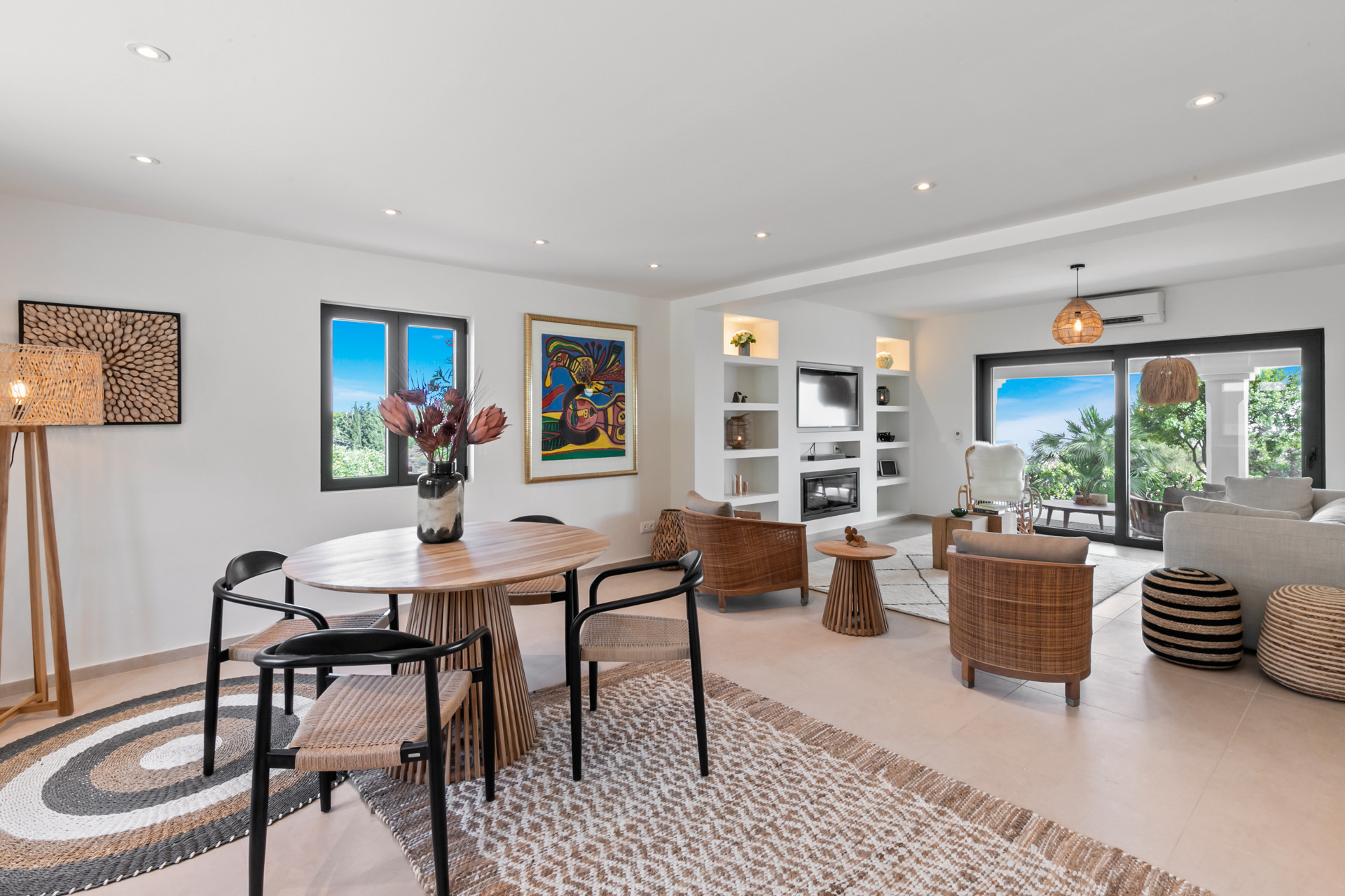 Hermosa villa totalmente reformada (2023) situada justo encima del centro de Estepona. Orientación sur con espectaculares vistas panorámicas a la costa y al Mediterráneo. Totalmente privado y tranquilo en una parcela de casi 5.000m2. La casa principal consta de un salón-comedor de planta abierta con chimenea de leña y una cocina de calidad totalmente equipada. Desde la zona de estar hay un acceso directo a las terrazas cubiertas y abiertas, el jardín y la zona de piscina. Servicio de lavandería y aseo. En la primera planta hay tres dormitorios con baños. En el segundo piso se encuentra el dormitorio principal en suite y vestidor. Casa de invitados separada con su propio baño, cocina americana, comedor y terraza. Otras comodidades incluyen una piscina con una zona chillout y barbacoa, una piscina infinita, exuberantes jardines maduros, un garaje para dos coches y una espléndida pista de tenis. Una propiedad única, una para ver y cerca del centro de Estepona!