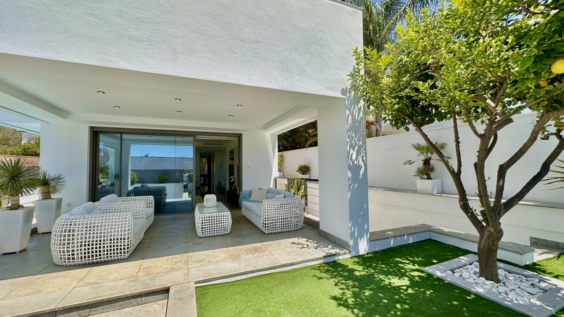 Modern Villa with high quality interior designer in Nagueles Golden Mile. This is a new 4 bedroom villa built to the highest standards of quality in the area of Nagueles. 4 double bedrooms, 3 bathrooms. 5 terraces including panoramic roof terrace with a shower and sunbeds. Free Wifi internet throughout the house. Fully air-conditioned and underfloor. heating Samsung sound system and Smart TV with 300+ international channels. Private 13.5m pool, heated, with sunbeds. Gaggenau dining-kitchen with American fridge, Teppanyaki grill and Espresso machine. Outdoor dining terrace with BBQ. Private garage for 2 cars. Gated entrance with video entry phone.