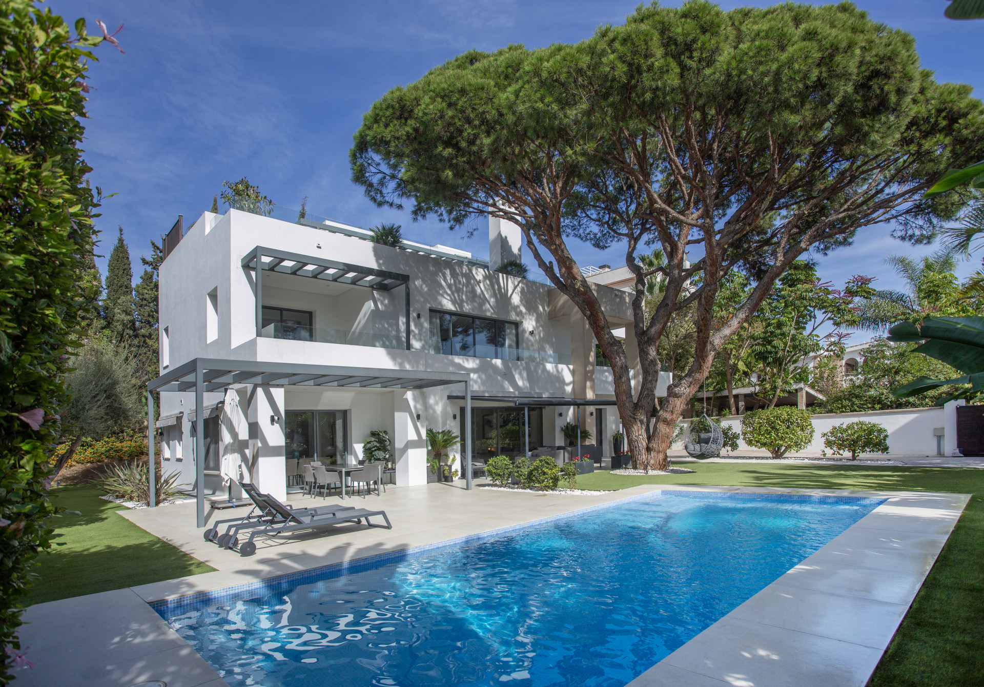 This luxurious brand-new 6-bedroom contemporary villa has it all; location, style and stunning garden views. The fabulous location in the Casablanca neighbourhood of the Golden Mile is just 300 metres from the beach and the glistening Mediterranean.