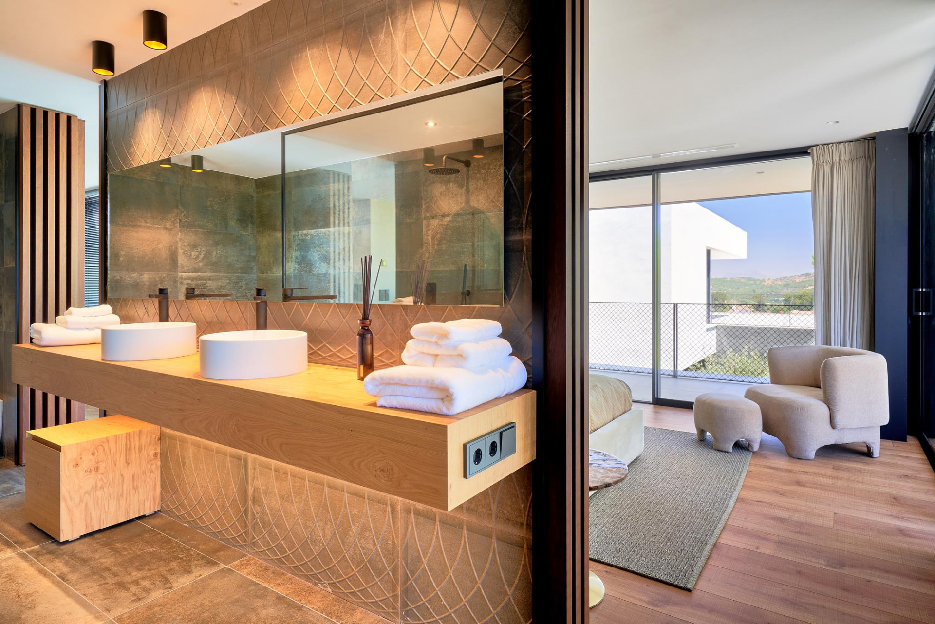 Weitere Merkmale dieser Luxusvilla sind eine Klimaanlage, eine Zentralheizung, ein Kamin, ein Solarium, doppelt verglaste Fenster und ein Alarmsystem. Das Anwesen verfügt außerdem über eine automatische Bewässerungsanlage, ein Home-Automationssystem und eine 24-Stunden-Serviceüberwachung.