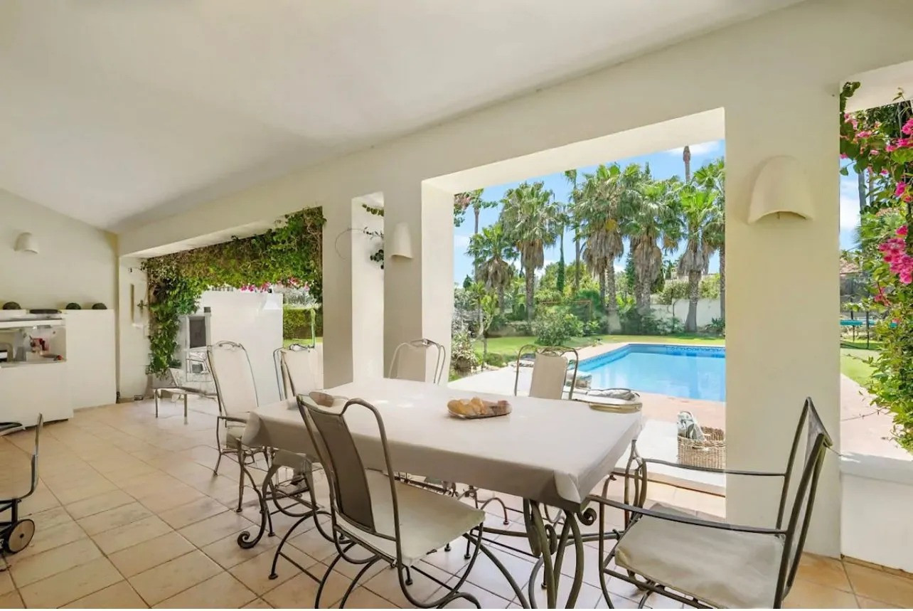 Villa familiar de 4 dormitorios en Sotorgande Alto Bienvenido a esta exquisita villa familiar de 4 dormitorios y 5 baños, distribuida en tres niveles y con lujosos espacios habitables y comodidades excepcionales. Ubicada en una ubicación tranquila, esta villa combina comodidad, funcionalidad y estilo para crear una casa ideal. La planta baja ofrece dos dormitorios con baño privado de tamaño generoso, cada uno diseñado teniendo en cuenta la privacidad y la serenidad, lo que los hace perfectos para familiares o invitados. La sala de estar es un verdadero santuario, con amplios ventanales que muestran vistas panorámicas de la belleza natural circundante. Junto a la sala de estar hay una cocina de concepto abierto, cuidadosamente diseñada con electrodomésticos modernos, amplio espacio de almacenamiento y una elegante isla. Esta cocina es un sueño para los entusiastas culinarios, ya que ofrece un flujo continuo tanto para cocinar como para recibir invitados. Un punto destacado de la planta baja es el fácil acceso a la terraza cubierta por el jardín y al área de la piscina, lo que crea una transición perfecta entre la vida interior y exterior. La terraza es ideal para cenar y relajarse al aire libre, con cómodos asientos y una mesa de comedor con vista al hermoso jardín. Para aquellos que aman entretener, un horno de pizza y una barbacoa realzan el espacio, ofreciendo la configuración perfecta para reuniones memorables con familiares y amigos. En el nivel inferior, encontrará un gimnasio completamente equipado, lo que le permitirá mantener un estilo de vida activo sin salir de casa. También hay un dormitorio en suite en este piso, que podría servir como un refugio privado para invitados o adaptarse para su uso como oficina o sala de pasatiempos. Además, una acogedora área cómoda brinda un espacio cómodo para relajarse, disfrutar de noches de cine o pasar tiempo de calidad con sus seres queridos. El nivel superior está dedicado a la amplia suite principal, que ofrece lujo y tranquilidad. La suite cuenta con un baño privado y grandes ventanales que llenan el espacio con luz natural, creando un refugio tranquilo con impresionantes vistas. En toda la villa, la atención al detalle es evidente en los acabados de alta gama, los accesorios de primera calidad y el elegante diseño moderno. La distribución bien pensada garantiza un flujo fluido entre las distintas áreas de estar, lo que hace que esta casa sea perfecta para familias que buscan sofisticación y comodidad. Ya sea que esté descansando junto a la piscina, recibiendo invitados o retirándose a uno de los santuarios privados de la villa, esta villa familiar de 4 dormitorios y 5 baños ofrece lo último en vida contemporánea y lujosa.
