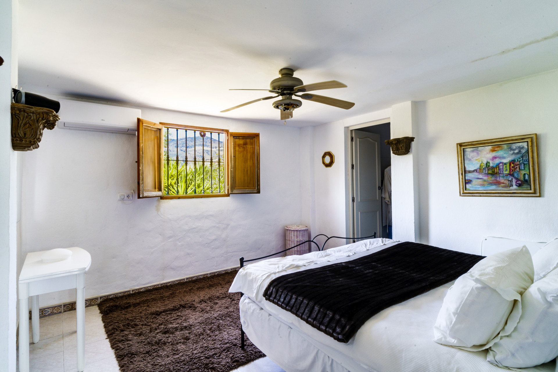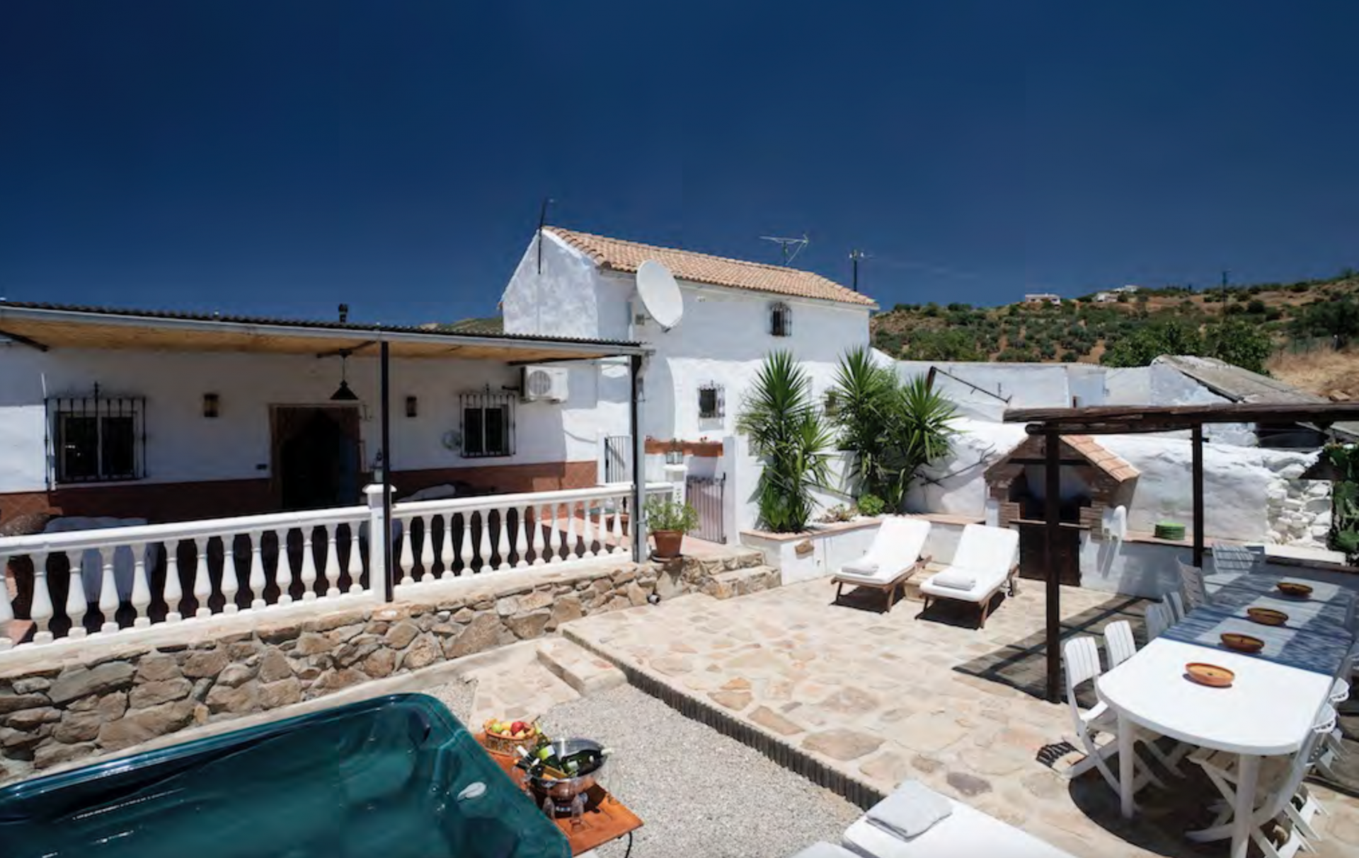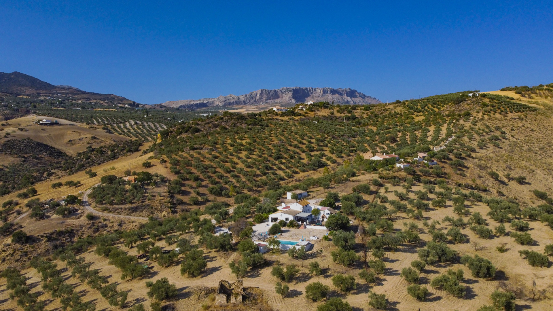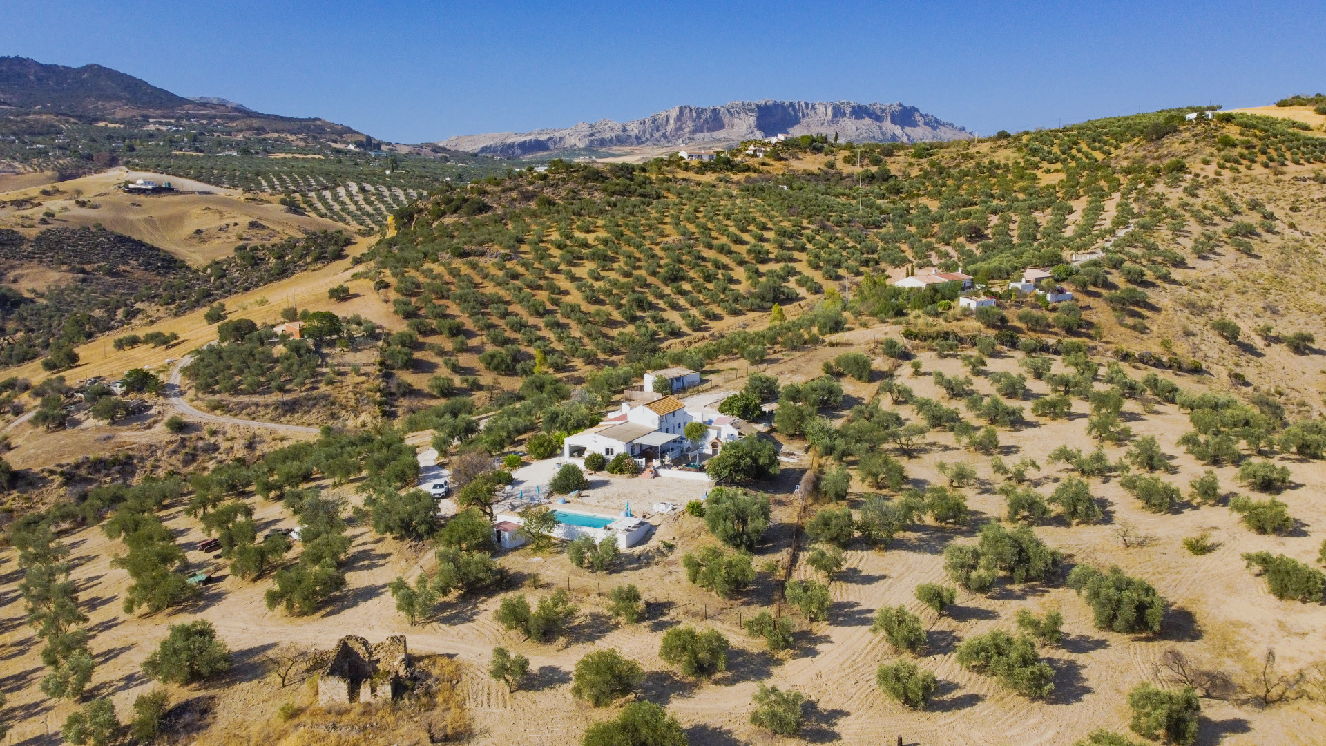 Experience the charm of this beautiful, quaint, and meticulously maintained country house in the process of being registered as a Rural Hotel with the Junta de Andalucía, offering panoramic views over the Torcal Mountain range and rolling hills. Nestled in a serene setting, the property boasts a private infinity pool, potentially heated for year-round enjoyment. The house features a stunning living room adorned with a glass wall that frames picturesque scenery. With five double bedrooms, three full bathrooms, the residence provides ample space for comfort. Enjoy meals in the separate dining room and a country-style eat-in kitchen. Additional highlights include an office and a convenient boot room. The property's outdoor space is equally enchanting, featuring a lovely BBQ area with a stone pizza oven, a dining area, bools area and a jacuzzi – an ideal spot to unwind and relish the peaceful surroundings. Surrounded by over 48,000 square meters of olive trees, almond trees, and fig trees, as well as a Casa Rural licence this country house offers a truly special and unique experience with WIFI, Satellite TV and an Alarm system.