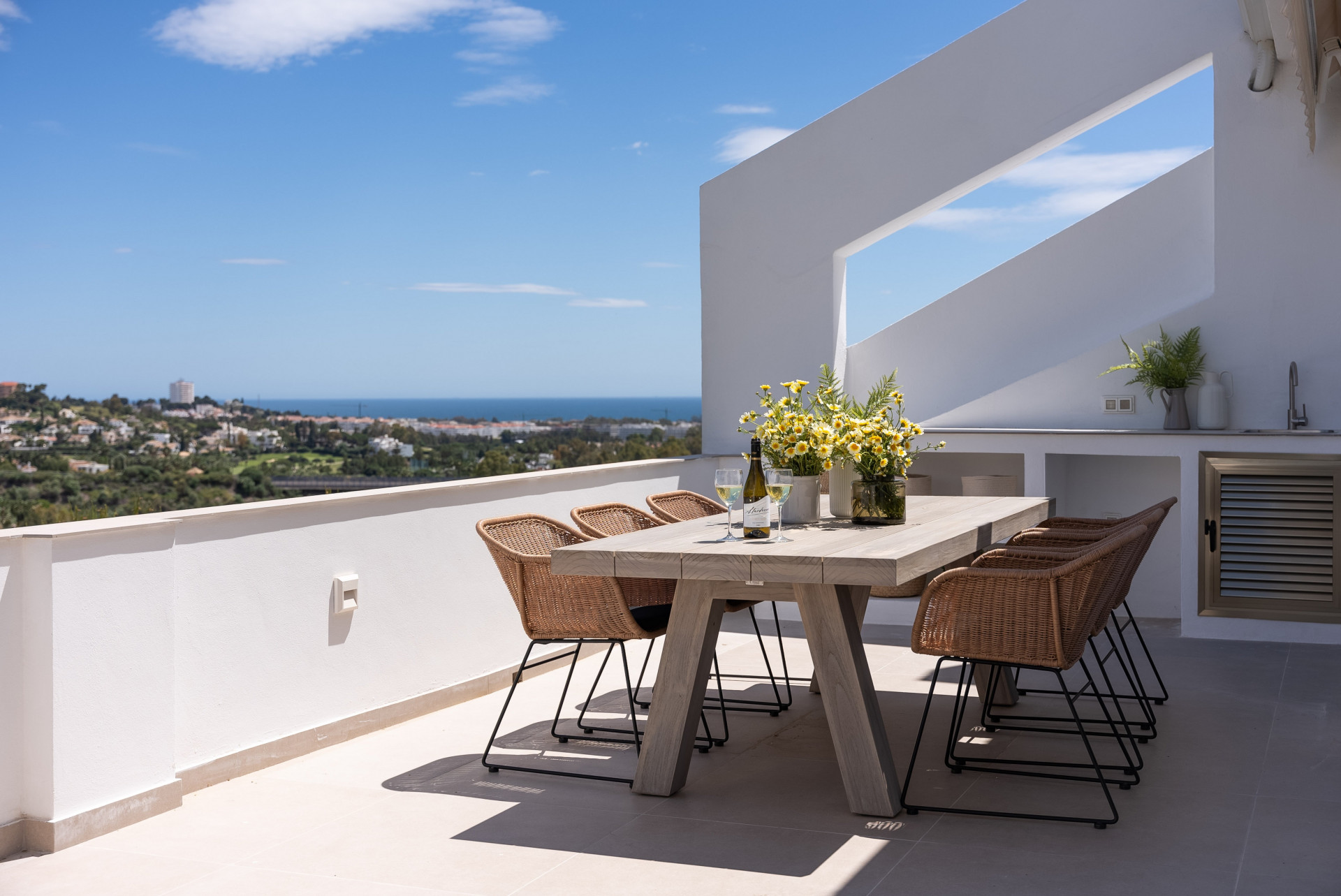 Welcome to this stunning ground floor apartment nestled in the prestigious area of La Quinta, Benahavís. Recently renovated to the highest standards, this residence offers an unparalleled combination of luxury, comfort, and breathtaking views. Boasting three spacious bedrooms, each with its own en-suite bathroom, plus an additional guest toilet, this apartment caters to both privacy and convenience. The thoughtful layout ensures a seamless flow between the living spaces, providing ample room for relaxation and entertaining. With 150m2 of interior space, every corner of this home exudes elegance and sophistication. The modern kitchen is equipped with top-of-the-line appliances, perfect for culinary enthusiasts and hosting gatherings. The living area is bathed in natural light, creating a welcoming ambiance for residents and guests alike. Step outside onto the expansive 30m2 terrace and immerse yourself in panoramic vistas that stretch across the frontline golf course. Enjoy your morning coffee with views of the sea, mountains, and lush greenery are simply mesmerising. Located in one of the most sought-after areas of Benahavís, this apartment offers the perfect blend of tranquility and convenience. Just a short drive away, you'll find world-class golf courses, upscale restaurants, and pristine beaches, ensuring an unparalleled lifestyle experience. Don't miss this opportunity to own a slice of paradise in La Quinta. Whether you're seeking a permanent residence or a holiday retreat, this ground floor apartment ticks all the boxes for luxury living on the Costa del Sol.
