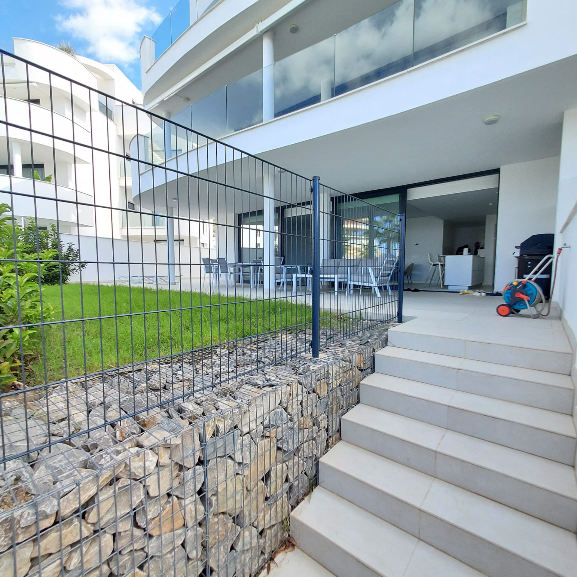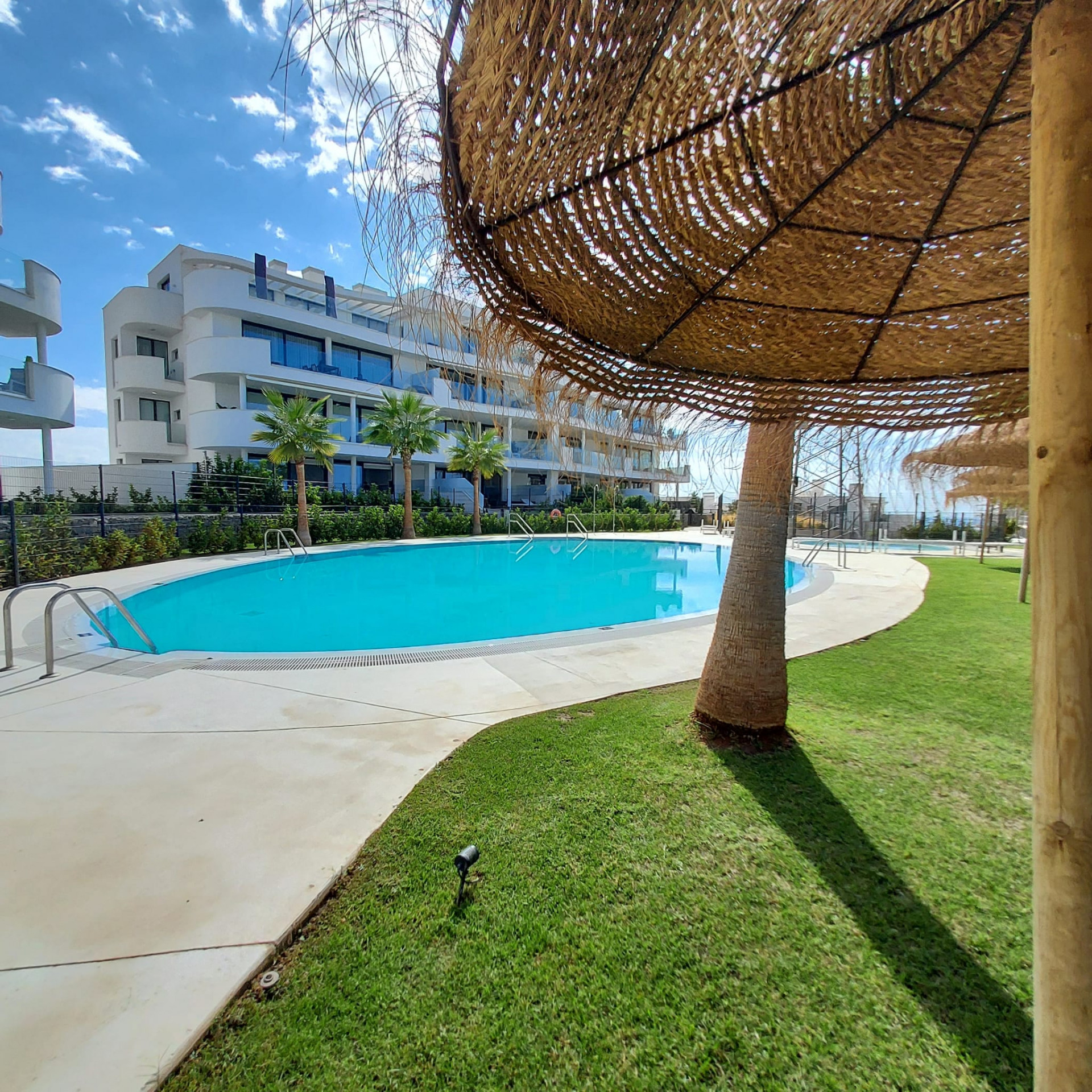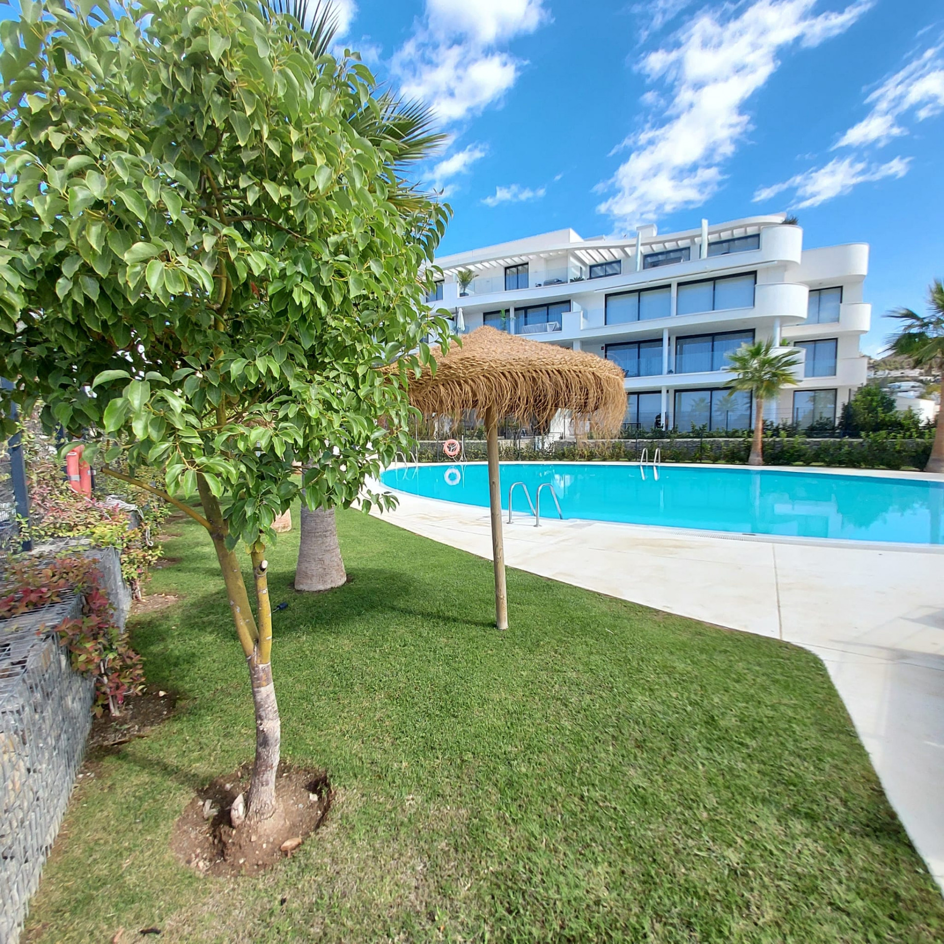 Beläget i det prestigefyllda Higueron West-komplexet, intill Curio Collection by Hilton, erbjuder denna lägenhet på bottenvåningen en unik möjlighet till en lyxig livsstil. Ägare till denna underbara lägenhet har privilegiet att få tillgång till gymmet, inomhus- och utomhuspoolerna till en symbolisk avgift. Komplexet färdigställdes 2022 och erbjuder moderna bekvämligheter och komfort. Egenskaper: Söderlägeshörnlägenhet: Njut av rikligt med naturligt ljus och värme i denna söderlägeshörnlägenhet med trädgårdar som omger den i tre olika riktningar. Utmärkt läge: Läget är enastående, med närhet till ett brett utbud av bekvämligheter, inklusive restauranger, butiker, golfbanor, skolor och den livliga staden Fuengirola. Rymlig interiör: Med 3 sovrum, 2 badrum (varav 1 en-suite) och generösa 123 kvadratmeter interiört utrymme erbjuder denna lägenhet gott om plats för bekvämt boende. Stor trädgård/terrass: Lägenheten har en imponerande 168 kvadratmeter trädgårds-/terrassutrymme, vilket ger dig möjlighet att skapa din privata oas, inklusive möjligheten att bygga en privat pool. Öppen planlösning: Den öppna planlösningen förenar smidigt de olika bostadsytorna och skapar en modern och välkomnande atmosfär. Köket är fullt möblerat, vilket gör det bekvämt för vardagsliv och underhållning. Privat parkering: En privat parkeringsplats i garaget ingår, vilket säkerställer din bils säkerhet och bekvämlighet. Denna lägenhet på bottenvåningen i Higueron West erbjuder en exklusiv blandning av modernt boende, lyxiga bekvämligheter och ett utmärkt läge. Oavsett om du söker en permanent bostad eller en semesterort är denna fastighet en anmärkningsvärd möjlighet att uppleva det bästa av Costa del Sol.
