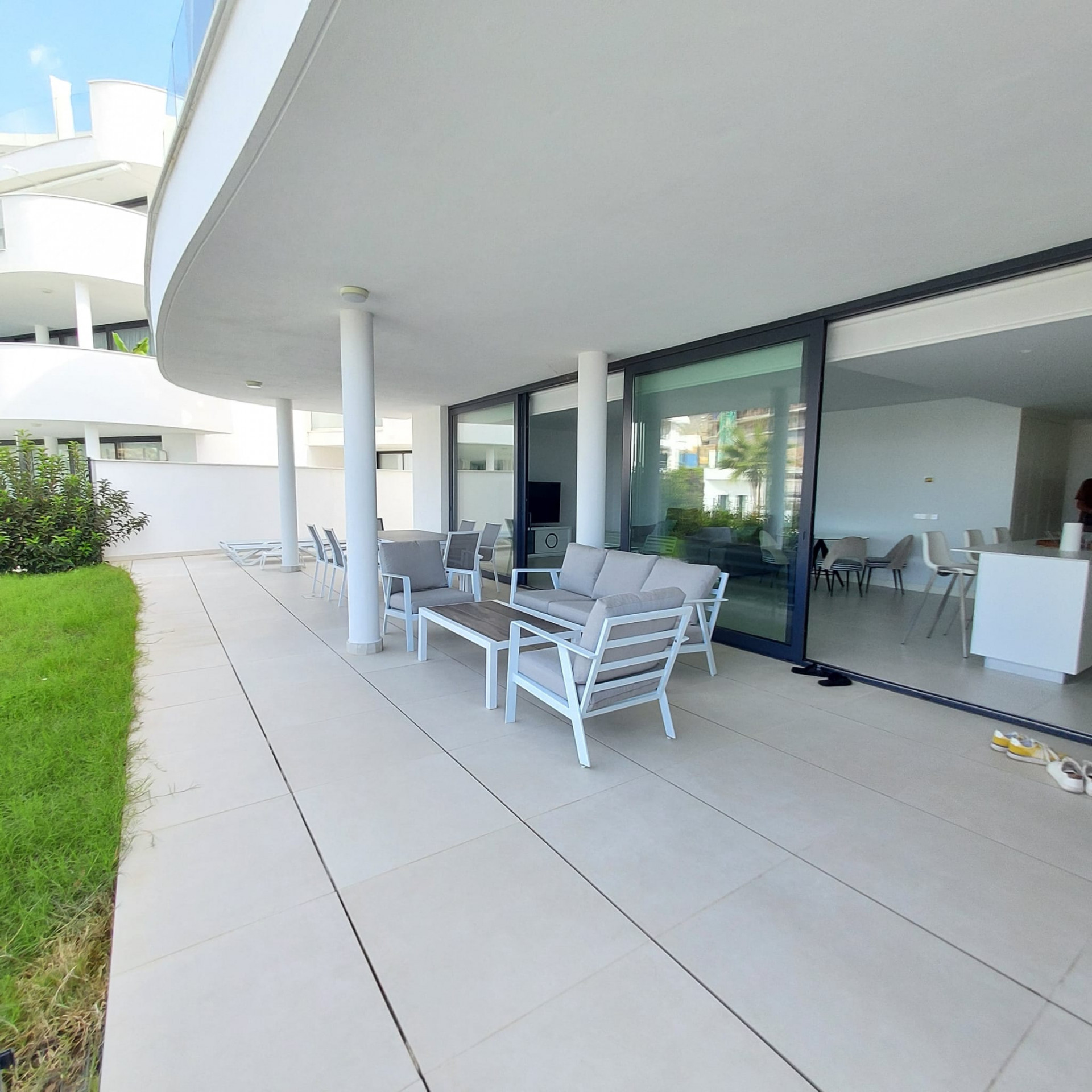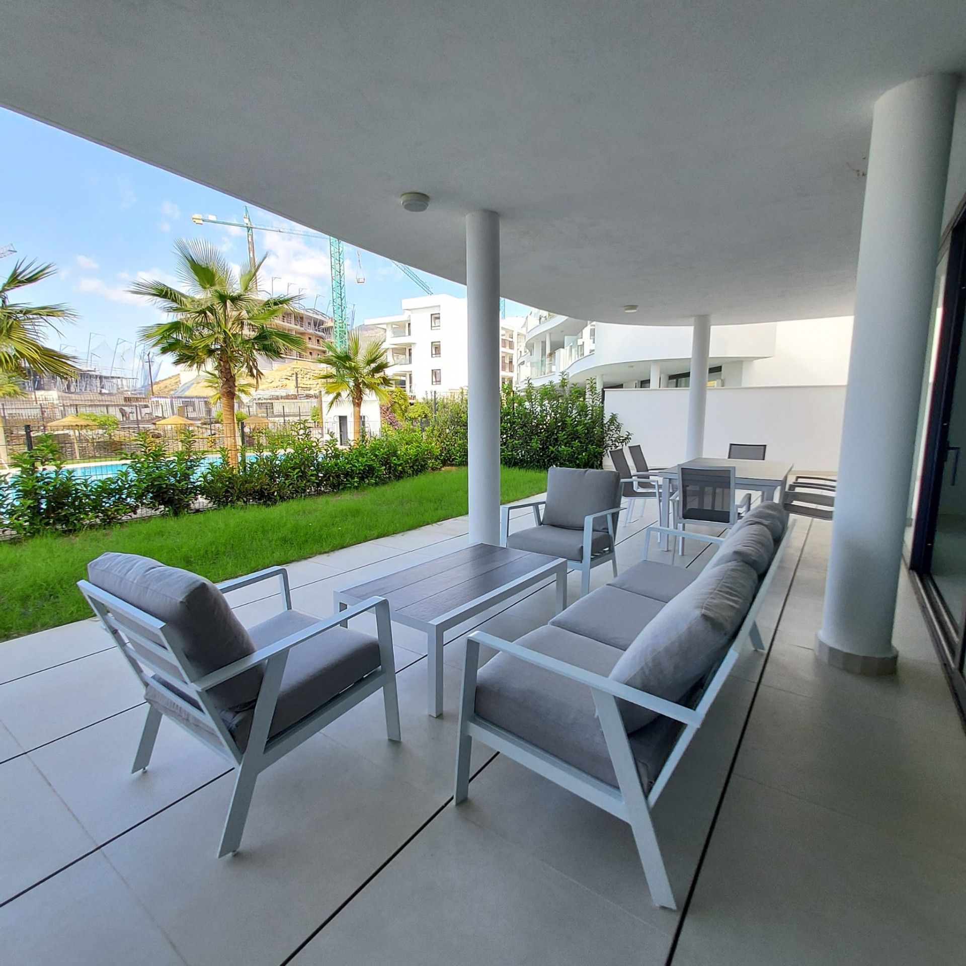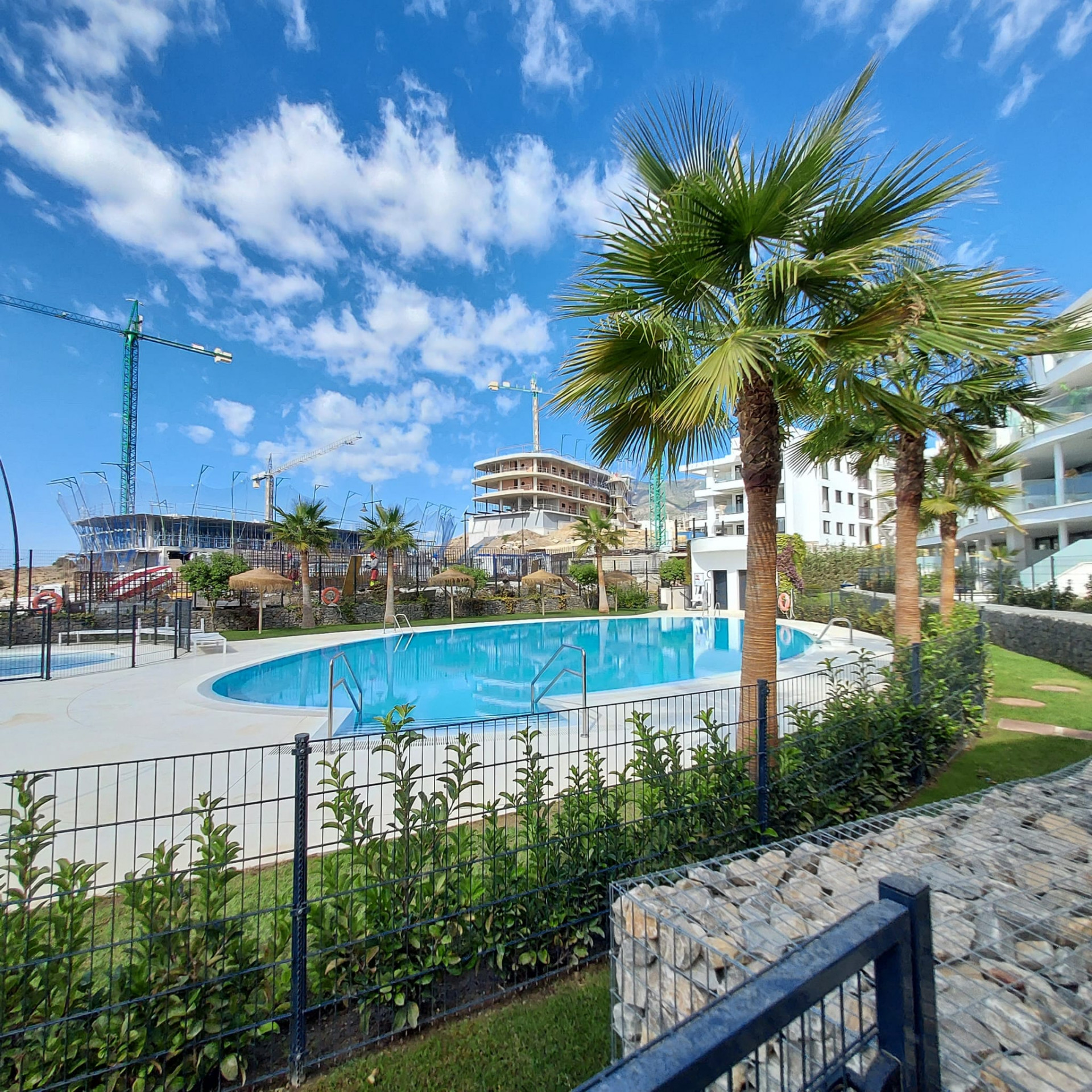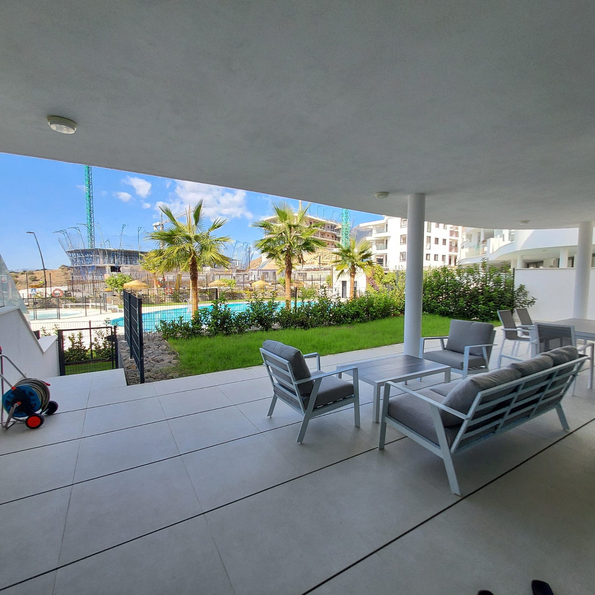 Beläget i det prestigefyllda Higueron West-komplexet, intill Curio Collection by Hilton, erbjuder denna lägenhet på bottenvåningen en unik möjlighet till en lyxig livsstil. Ägare till denna underbara lägenhet har privilegiet att få tillgång till gymmet, inomhus- och utomhuspoolerna till en symbolisk avgift. Komplexet färdigställdes 2022 och erbjuder moderna bekvämligheter och komfort. Egenskaper: Söderlägeshörnlägenhet: Njut av rikligt med naturligt ljus och värme i denna söderlägeshörnlägenhet med trädgårdar som omger den i tre olika riktningar. Utmärkt läge: Läget är enastående, med närhet till ett brett utbud av bekvämligheter, inklusive restauranger, butiker, golfbanor, skolor och den livliga staden Fuengirola. Rymlig interiör: Med 3 sovrum, 2 badrum (varav 1 en-suite) och generösa 123 kvadratmeter interiört utrymme erbjuder denna lägenhet gott om plats för bekvämt boende. Stor trädgård/terrass: Lägenheten har en imponerande 168 kvadratmeter trädgårds-/terrassutrymme, vilket ger dig möjlighet att skapa din privata oas, inklusive möjligheten att bygga en privat pool. Öppen planlösning: Den öppna planlösningen förenar smidigt de olika bostadsytorna och skapar en modern och välkomnande atmosfär. Köket är fullt möblerat, vilket gör det bekvämt för vardagsliv och underhållning. Privat parkering: En privat parkeringsplats i garaget ingår, vilket säkerställer din bils säkerhet och bekvämlighet. Denna lägenhet på bottenvåningen i Higueron West erbjuder en exklusiv blandning av modernt boende, lyxiga bekvämligheter och ett utmärkt läge. Oavsett om du söker en permanent bostad eller en semesterort är denna fastighet en anmärkningsvärd möjlighet att uppleva det bästa av Costa del Sol.