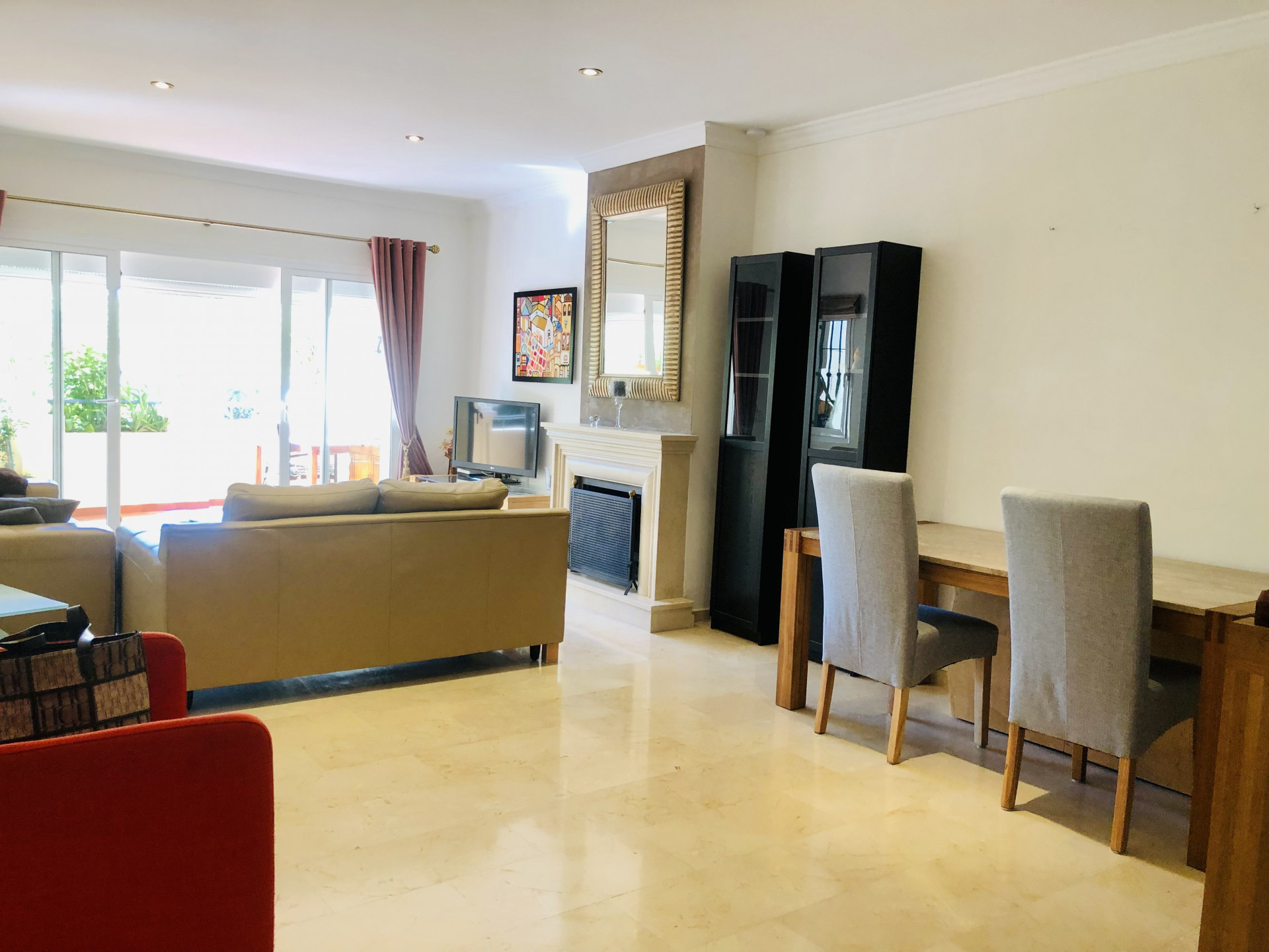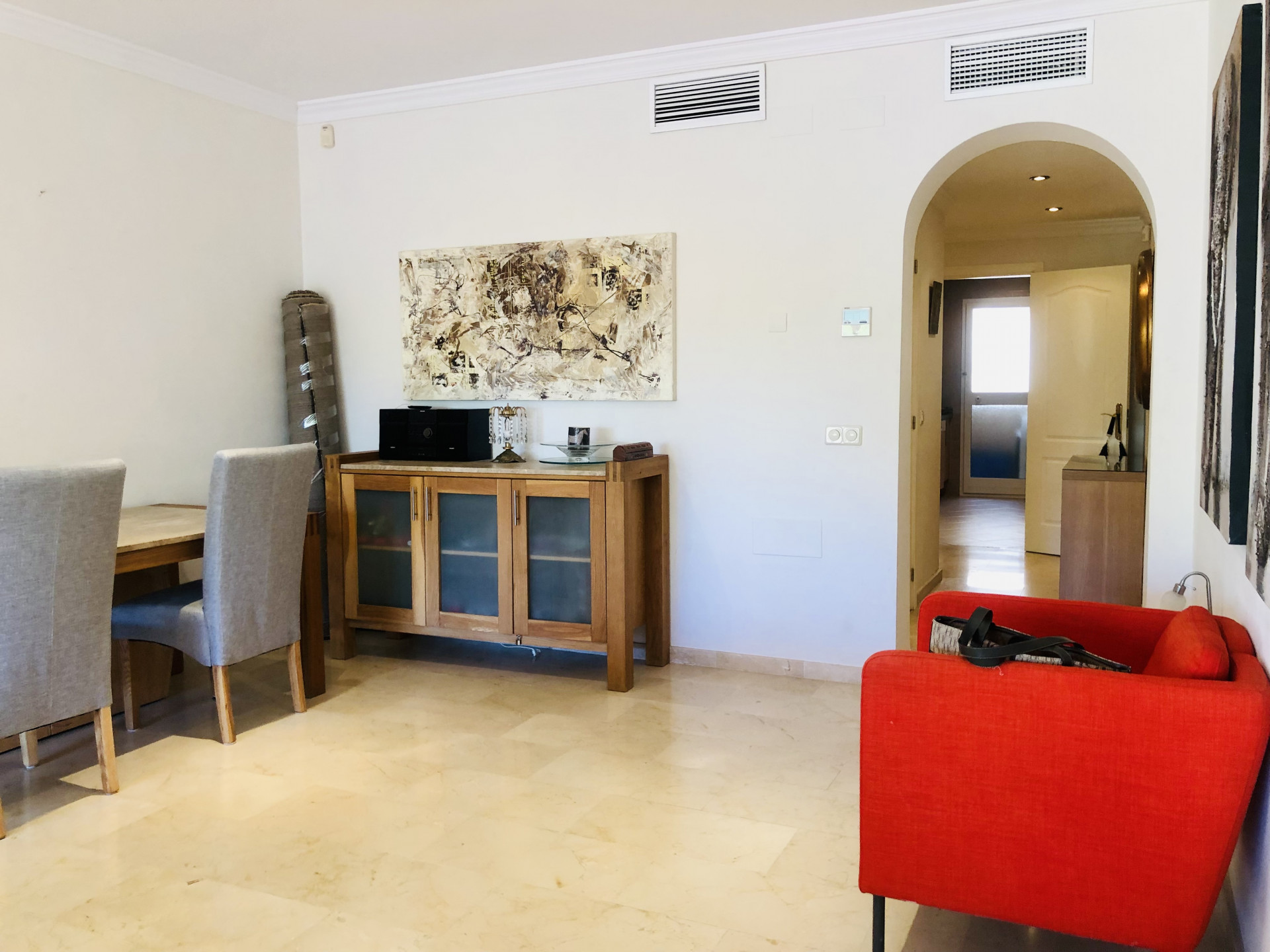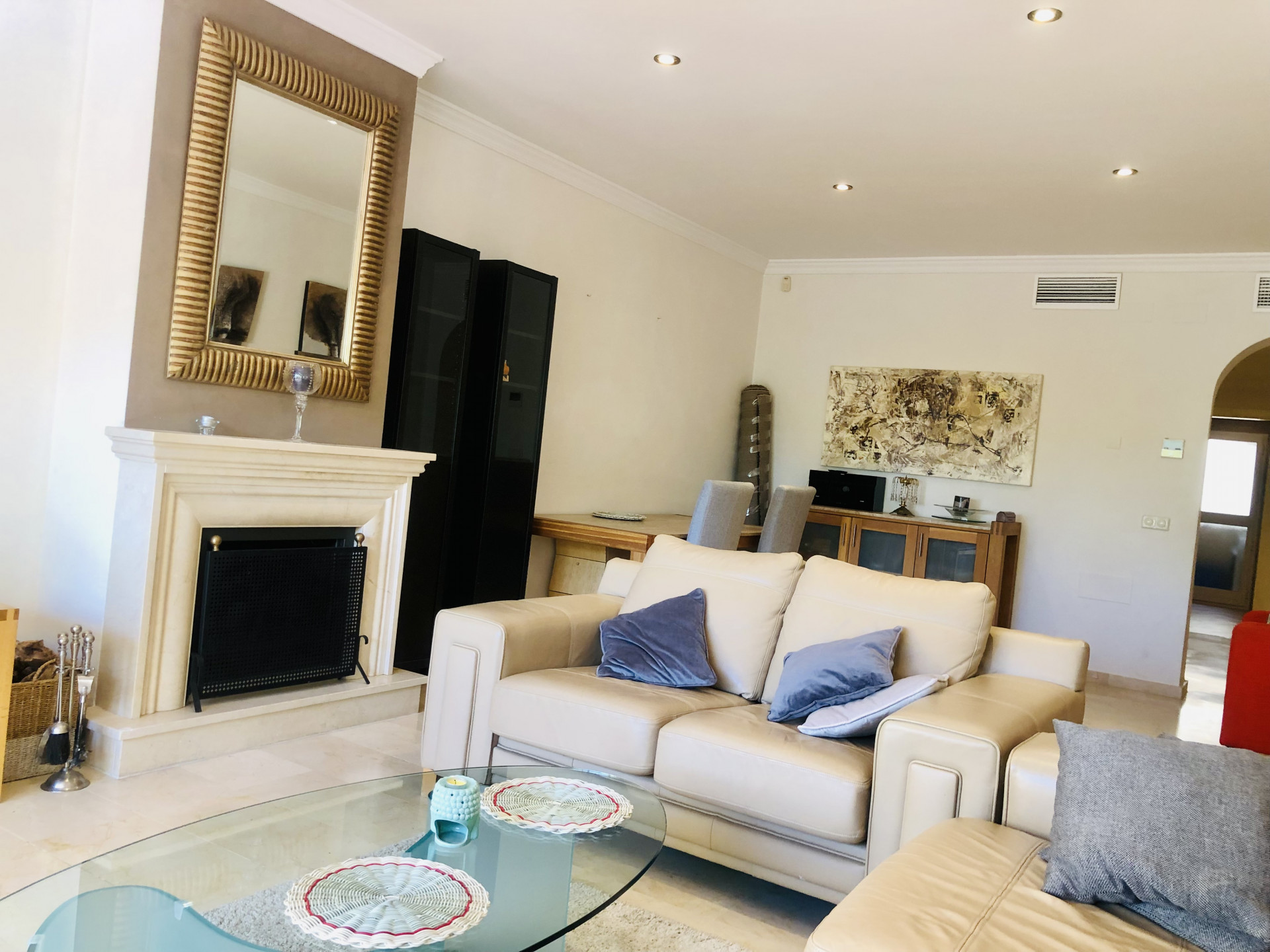 This beautiful apartment is situated in the highly desirable area of La Elviria in Marbella East, offering a perfect blend of convenience and tranquility. Located just minutes away from the beach, shopping centers, supermarkets, pharmacies, restaurants, and other essential amenities, this property promises a lifestyle of comfort and ease. Nestled within a gated community, the apartment boasts access to a swimming pool and well-maintained gardens, providing residents with a serene and relaxing environment. The interior of the apartment features a spacious living room adorned with a fireplace, offering a cozy ambiance and direct access to the terrace, where you can enjoy outdoor living and stunning views. The fully fitted kitchen and utility room provide practicality and convenience for daily living. This apartment comprises two bedrooms, each with its own ensuite bathroom equipped with a Jacuzzi, shower, and bathtub. Both bedrooms benefit from exterior views and underfloor heating, ensuring comfort throughout the year. Additionally, there is a guest toilet for added convenience. With its southwest orientation, the apartment enjoys abundant natural light, creating a warm and inviting atmosphere. Luxury details such as marble floors, a security door, electric shutters, and a dressing room in the master bedroom further enhance the appeal of this property. Whether you are seeking a permanent residence, a vacation home, or an investment opportunity, this apartment offers versatility and potential. The high demand for rental properties in the area makes it an attractive option for both long-term and short-term rentals, providing a lucrative investment opportunity.