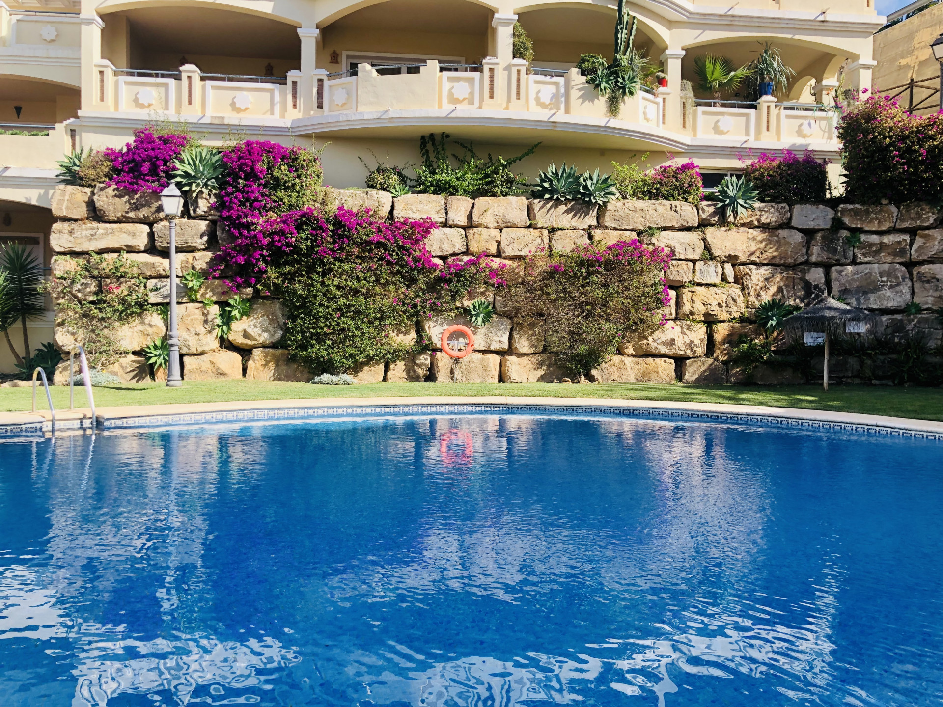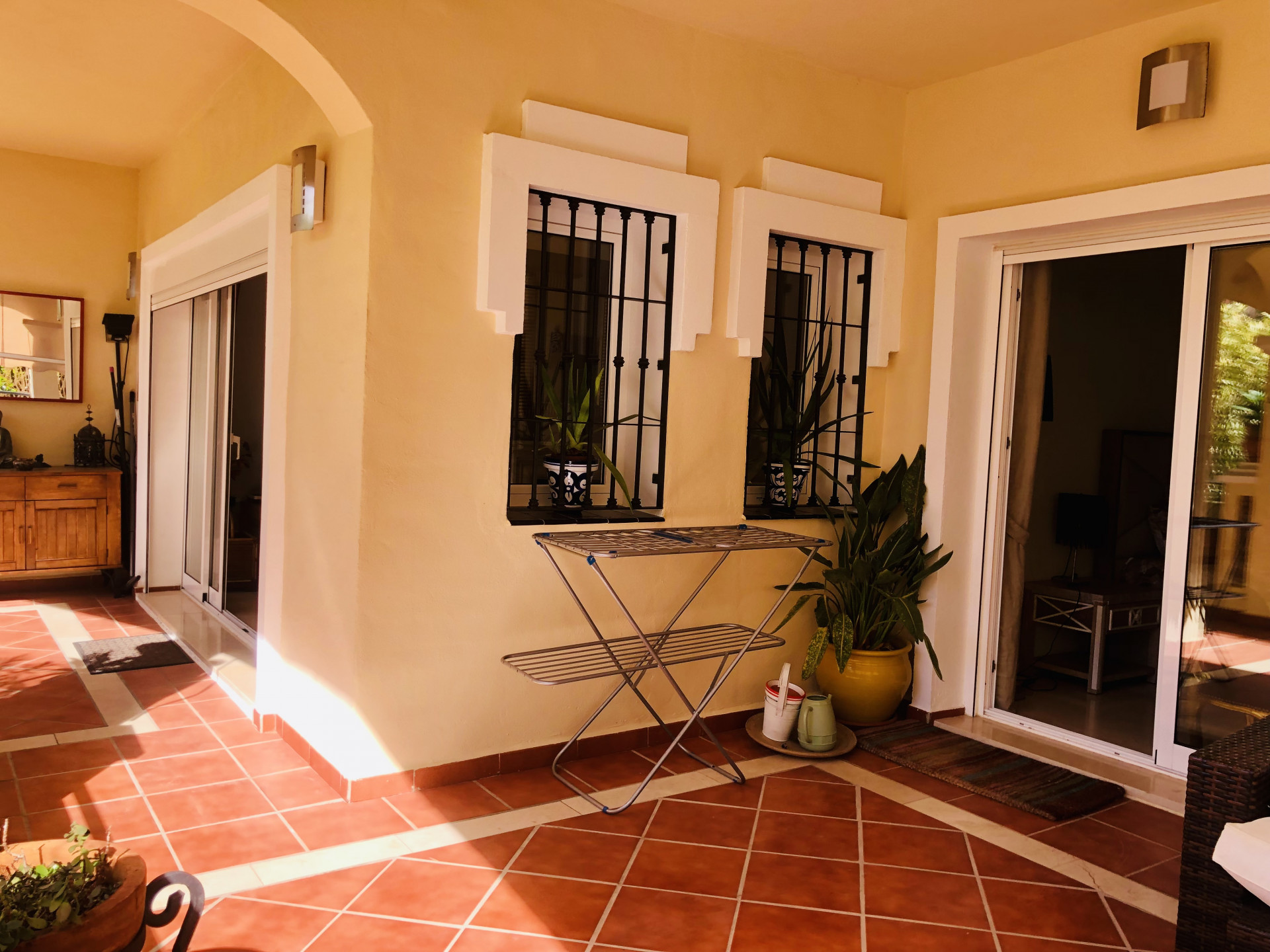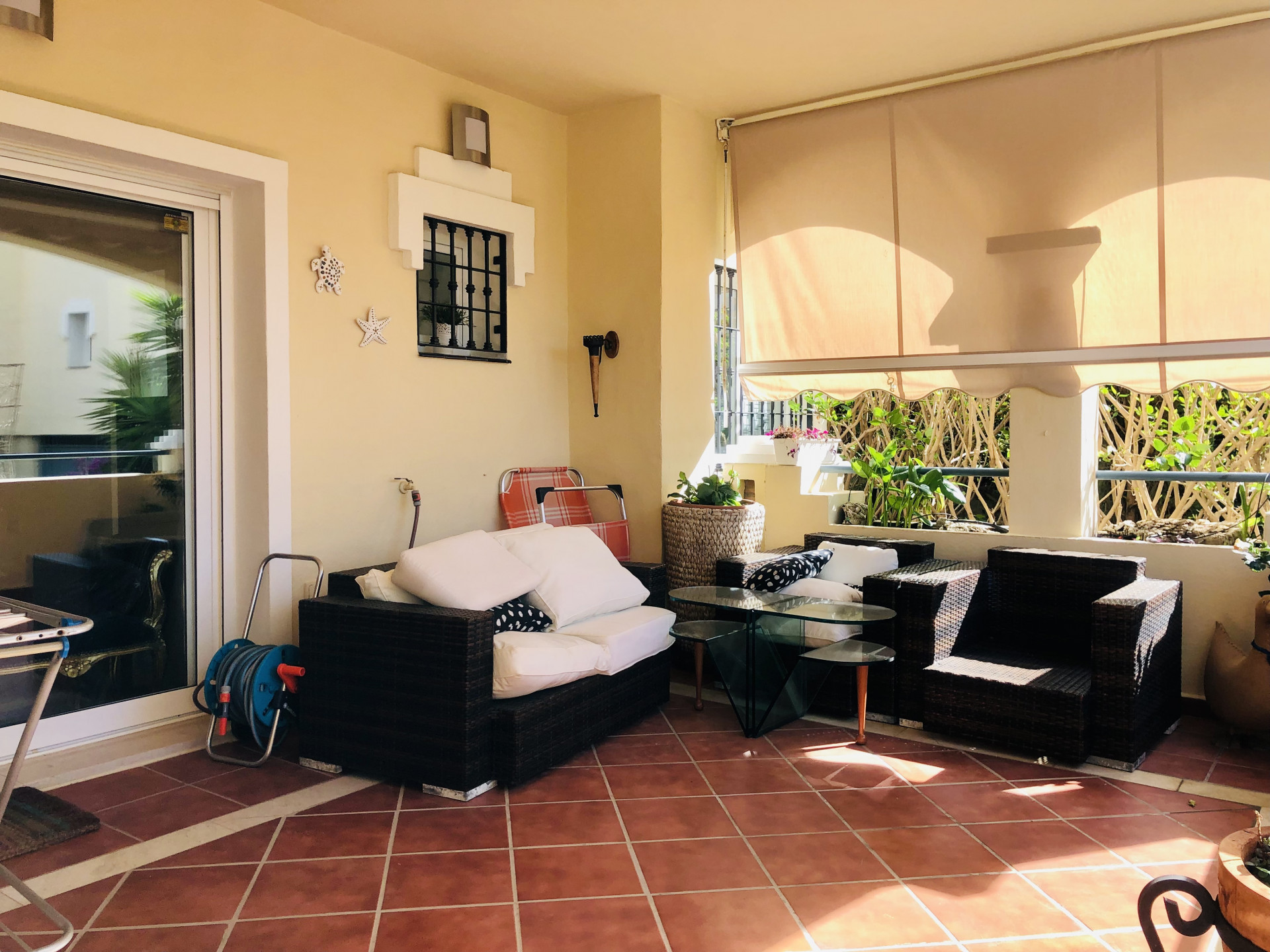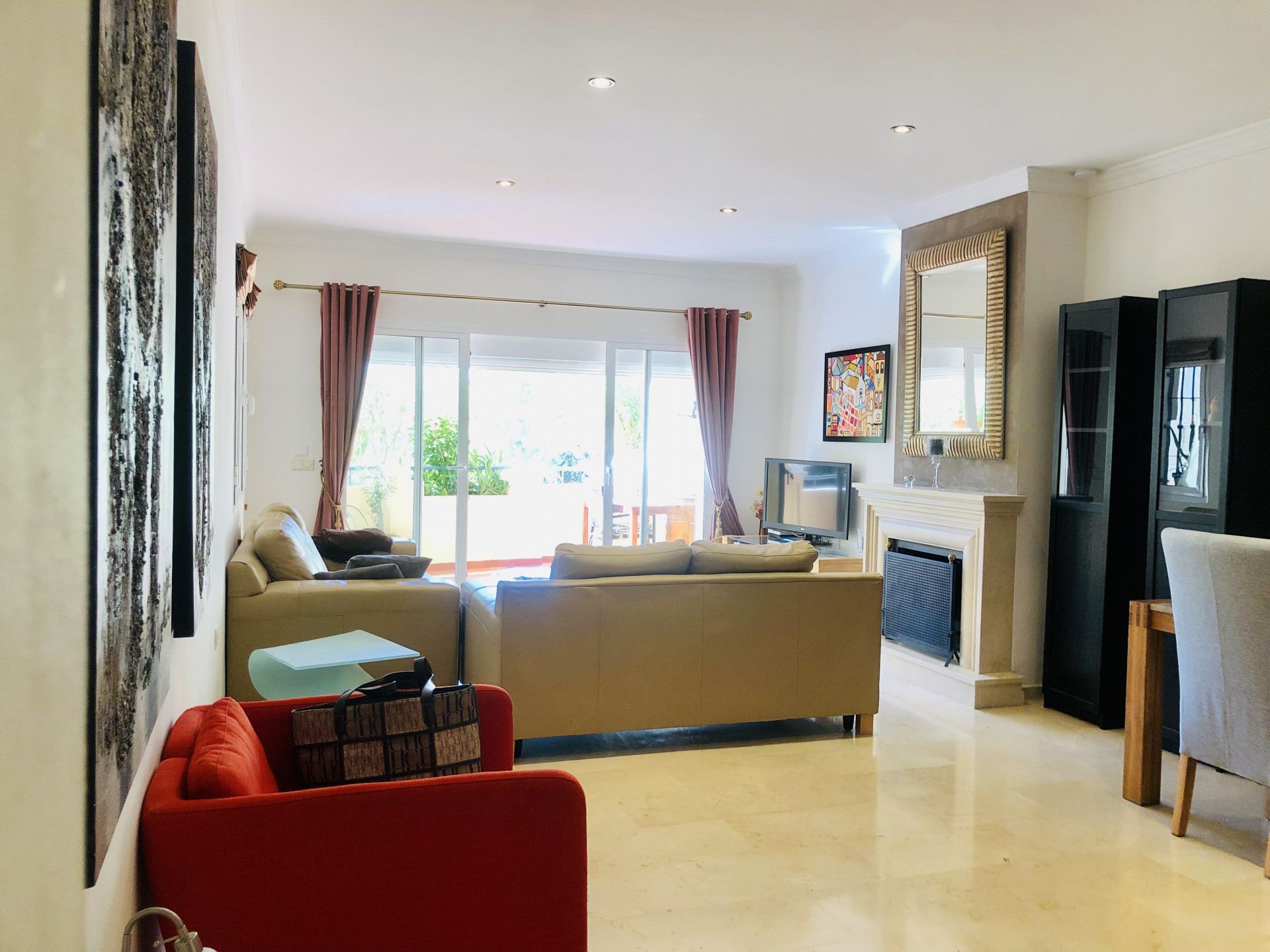 This beautiful apartment is situated in the highly desirable area of La Elviria in Marbella East, offering a perfect blend of convenience and tranquility. Located just minutes away from the beach, shopping centers, supermarkets, pharmacies, restaurants, and other essential amenities, this property promises a lifestyle of comfort and ease. Nestled within a gated community, the apartment boasts access to a swimming pool and well-maintained gardens, providing residents with a serene and relaxing environment. The interior of the apartment features a spacious living room adorned with a fireplace, offering a cozy ambiance and direct access to the terrace, where you can enjoy outdoor living and stunning views. The fully fitted kitchen and utility room provide practicality and convenience for daily living. This apartment comprises two bedrooms, each with its own ensuite bathroom equipped with a Jacuzzi, shower, and bathtub. Both bedrooms benefit from exterior views and underfloor heating, ensuring comfort throughout the year. Additionally, there is a guest toilet for added convenience. With its southwest orientation, the apartment enjoys abundant natural light, creating a warm and inviting atmosphere. Luxury details such as marble floors, a security door, electric shutters, and a dressing room in the master bedroom further enhance the appeal of this property. Whether you are seeking a permanent residence, a vacation home, or an investment opportunity, this apartment offers versatility and potential. The high demand for rental properties in the area makes it an attractive option for both long-term and short-term rentals, providing a lucrative investment opportunity.