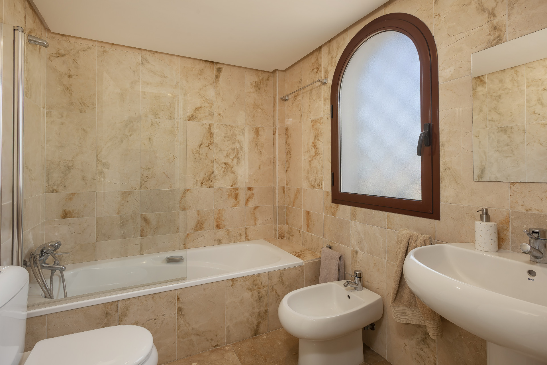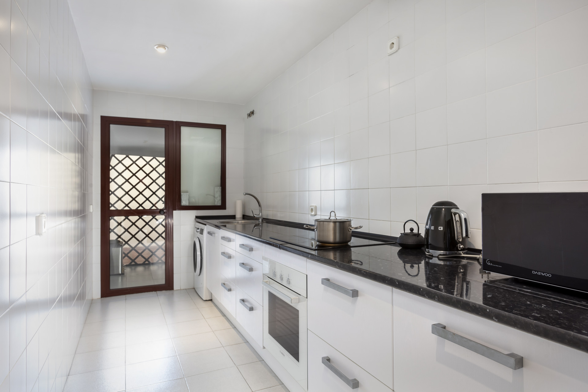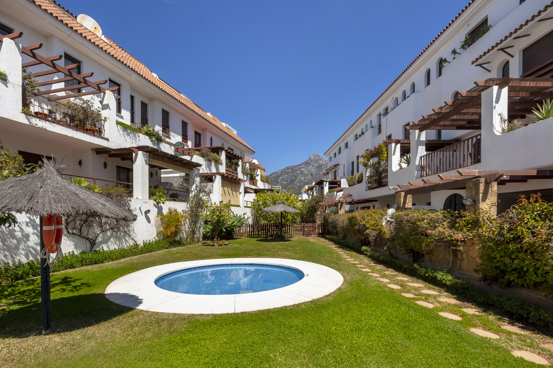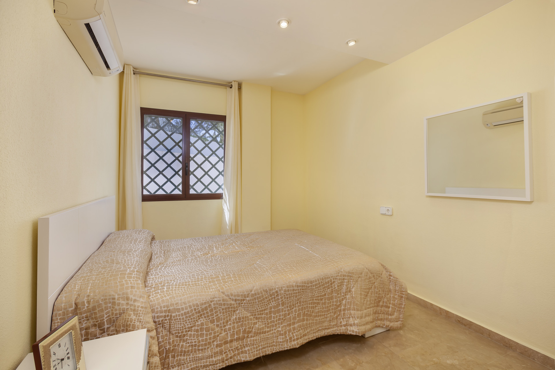 Precioso apartamento de tres dormitorios en planta baja, con orientación oeste, en la comunidad cerrada y bien establecida Coto Real; con cuidados jardines y piscinas comunitarias ya un corto trayecto en coche de Marbella, Puerto Banús y todos los servicios de ocio. Esta propiedad bien ubicada tiene; una sala de estar y comedor de planta abierta; cocina totalmente equipada con lavadero independiente y acceso a la gran terraza esquinera que podría convertirse en un hermoso jardín; tres habitaciones; y dos baños. Otras características incluyen aire acondicionado frío y calor, suelos de mármol, armarios empotrados, trastero, dos plazas de aparcamiento privado y servicio de conserjería.