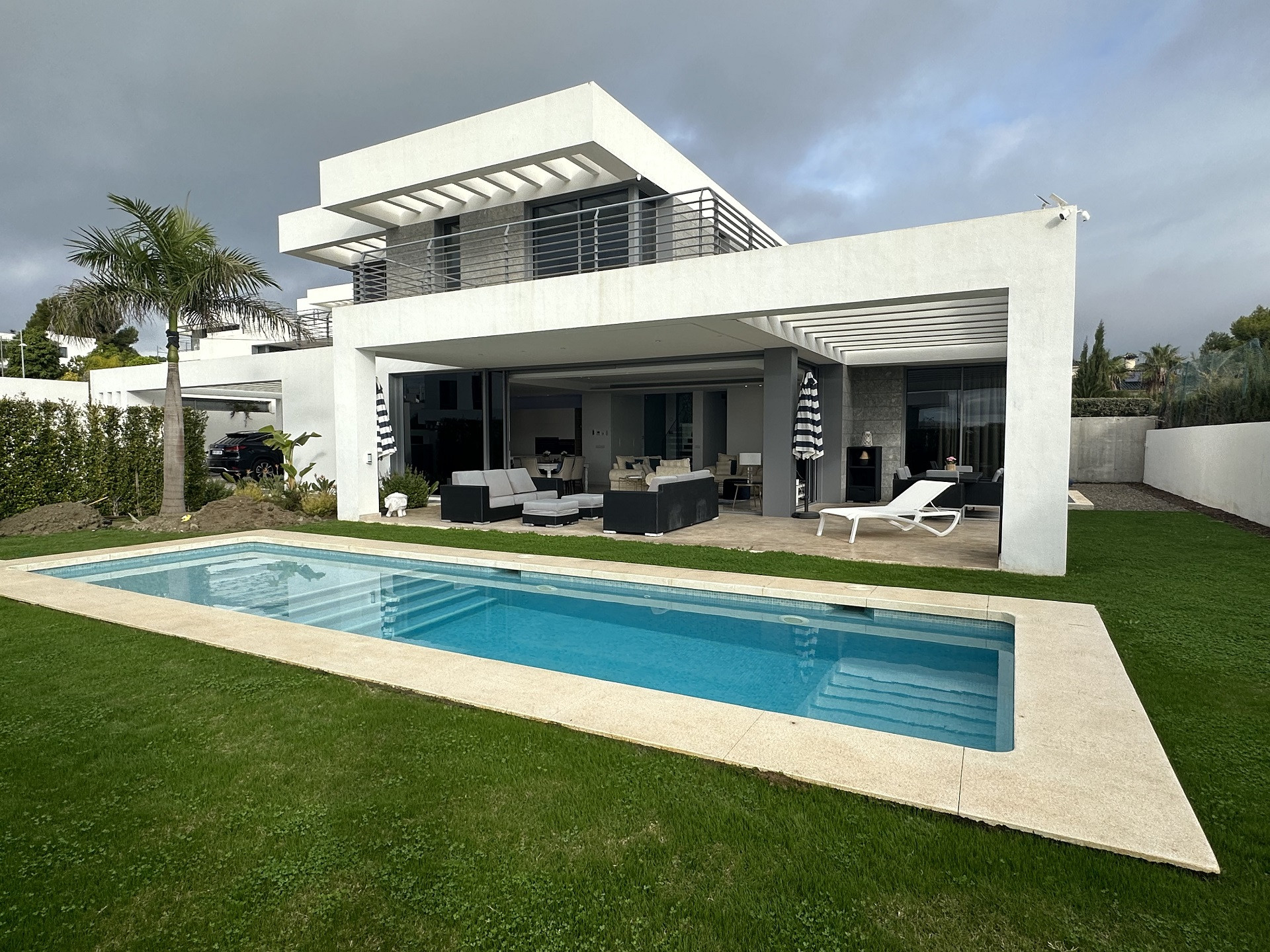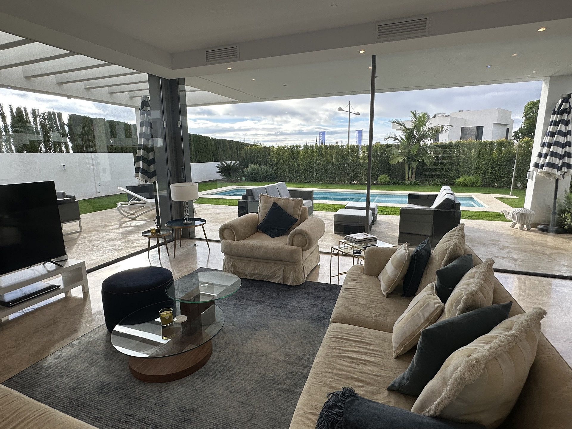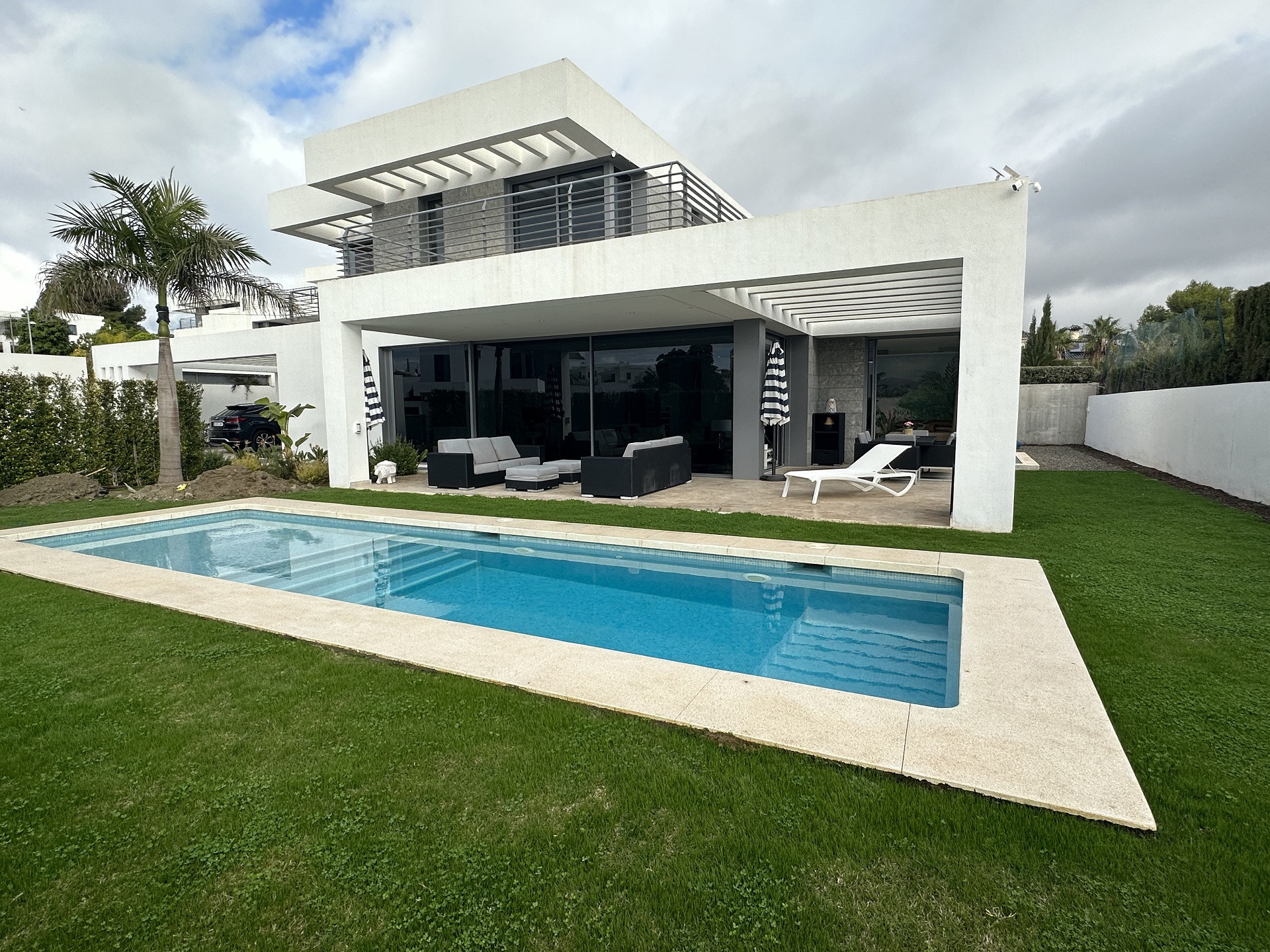 Disponible a partir de enero de 2024 para alquiler mensual a largo plazo o corto plazo de 3 a 6 meses (comuníquese con para obtener información detallada). Explore esta lujosa villa en la Nueva Milla de Oro de Estepona. Esta asombrosa villa cuenta con 3 dormitorios con baño. La cocina totalmente equipada fomenta la excelencia culinaria, mientras que la amplia sala de estar y comedor abierta se conecta a la perfección con la impresionante piscina y el patio trasero meticulosamente ajardinado. Disfrute de la sofisticación y la opulencia de esta residencia excepcional. Descubra una vida de refinamiento incomparable en la muy solicitada Nueva Milla de Oro. Contacto para más información por favor. ¡NO DURARÁ!