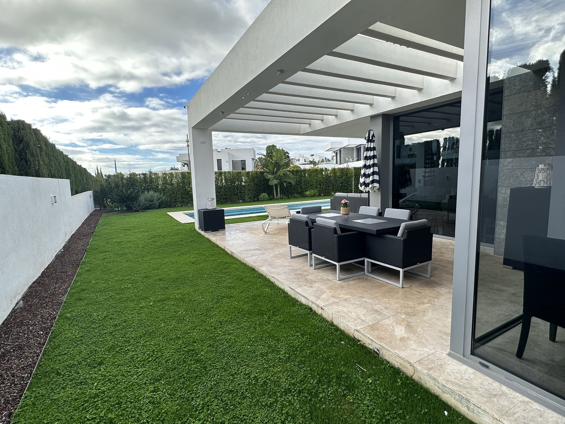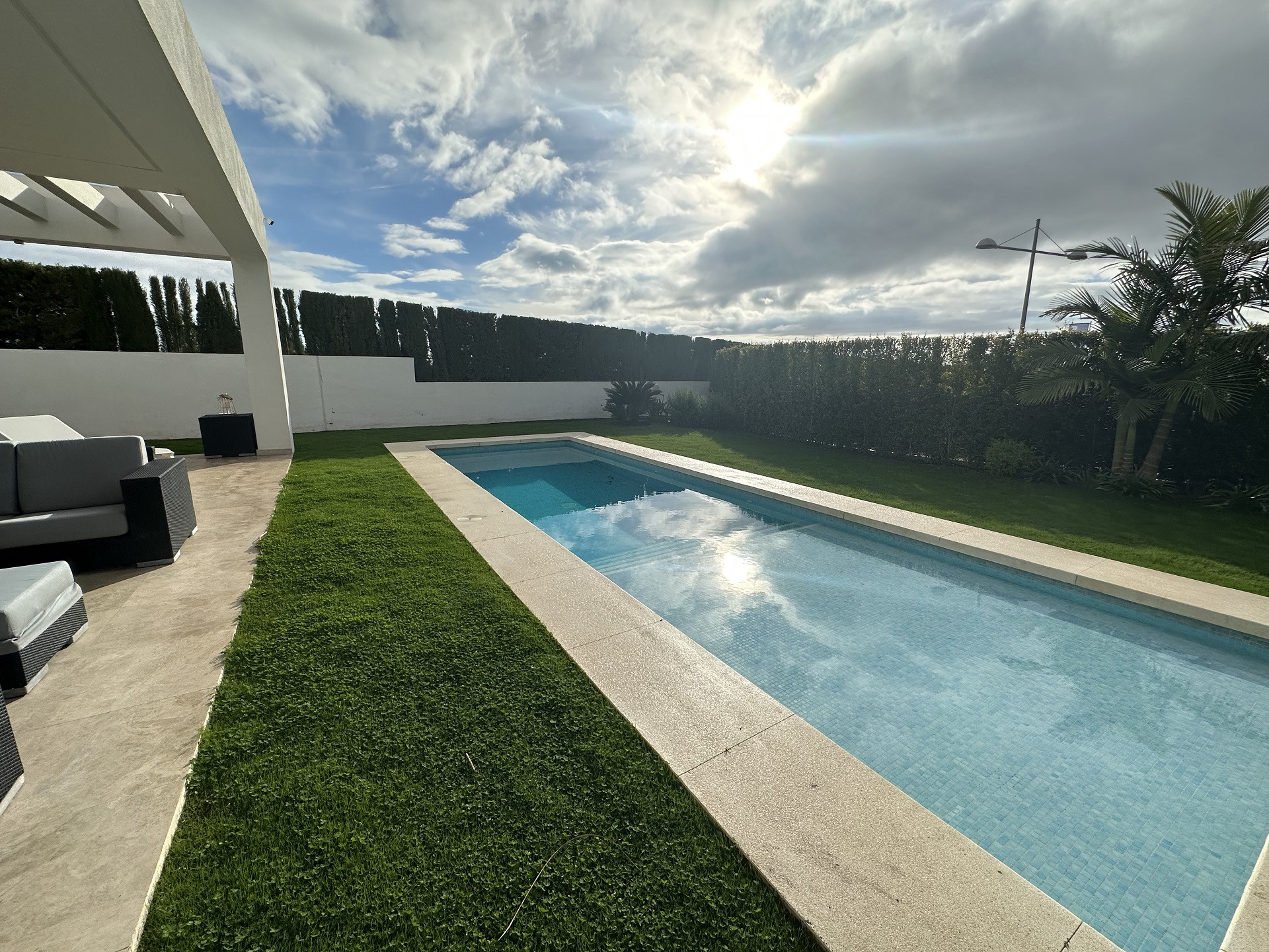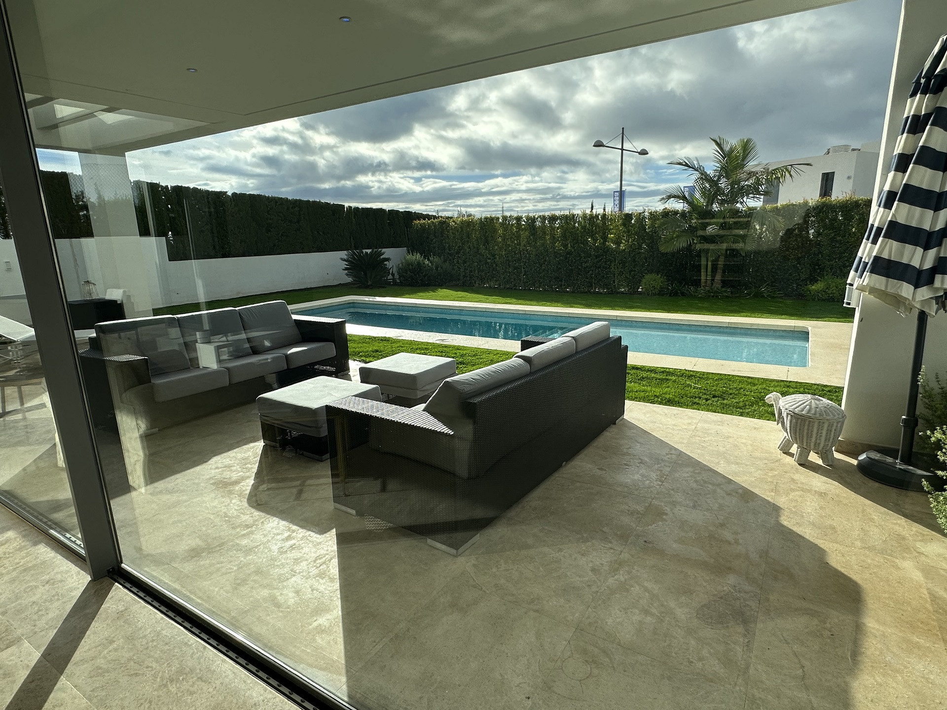 Disponible a partir de enero de 2024 para alquiler mensual a largo plazo o corto plazo de 3 a 6 meses (comuníquese con para obtener información detallada). Explore esta lujosa villa en la Nueva Milla de Oro de Estepona. Esta asombrosa villa cuenta con 3 dormitorios con baño. La cocina totalmente equipada fomenta la excelencia culinaria, mientras que la amplia sala de estar y comedor abierta se conecta a la perfección con la impresionante piscina y el patio trasero meticulosamente ajardinado. Disfrute de la sofisticación y la opulencia de esta residencia excepcional. Descubra una vida de refinamiento incomparable en la muy solicitada Nueva Milla de Oro. Contacto para más información por favor. ¡NO DURARÁ!