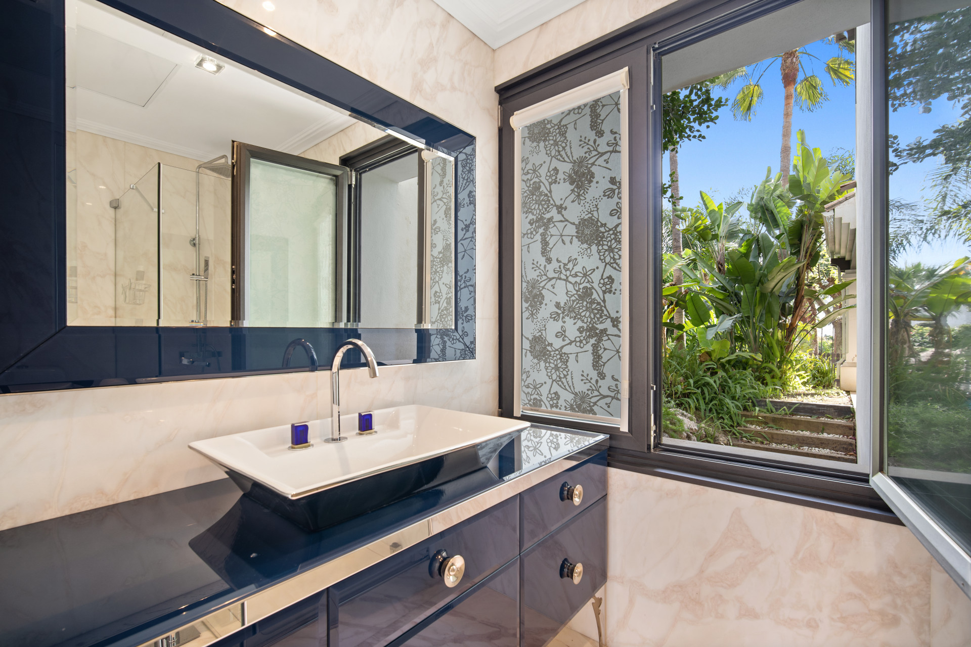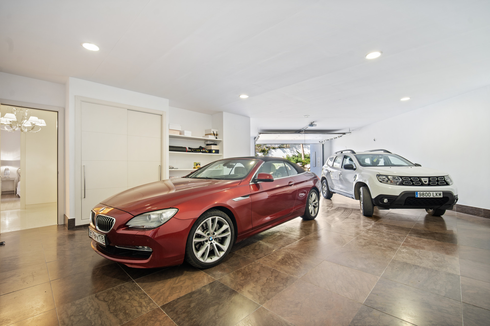 Dejlig seks værelses sydvestlige luksus villa i Village Las Lomas de Magna Marbella, en af de mest prestigefyldte komplekser på Marbellas Golden Mile, med 24 timers sikkerhed service, to store fællesskaber og tropiske haver af utrolig skønhed. Villaen ligger tæt på alle tjenester, supermarkeder, butikker, restauranter, skoler, golfbaner og kun fem minutter med bil fra havet. Denne utrolige ejendom består af tre etager. Hovedgulvet er fordelt i en entré, en rummelig stue med direkte adgang til den halvdækkede terrasse. Terrassen omfatter tropiske haver med rum til at spise og en kølig område, inden plottet er der en privat udgang til communitypool; et lyst soveværelse med eget badeværelse, et stort fuldt udstyret køkken og et gæstetoilet. Overetagen har tre soveværelser med eget badeværelse og en solrig terrasse med delvis havudsigt. kælderen består af to soveværelser med badeværelser, et spil rum, vaskeri rum, sauna og hammam og en garage med plads til fire biler. Huset har også sin egen elevator. De materialer, der anvendes i sin konstruktion og indretning, taler om luksus af denne ejendom