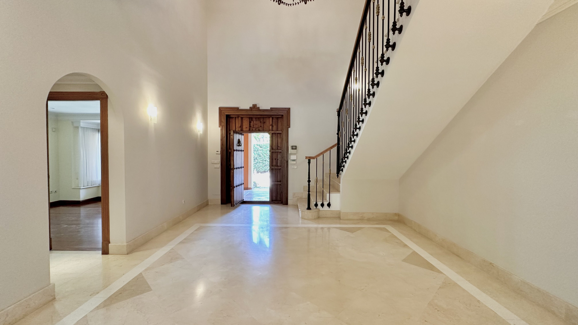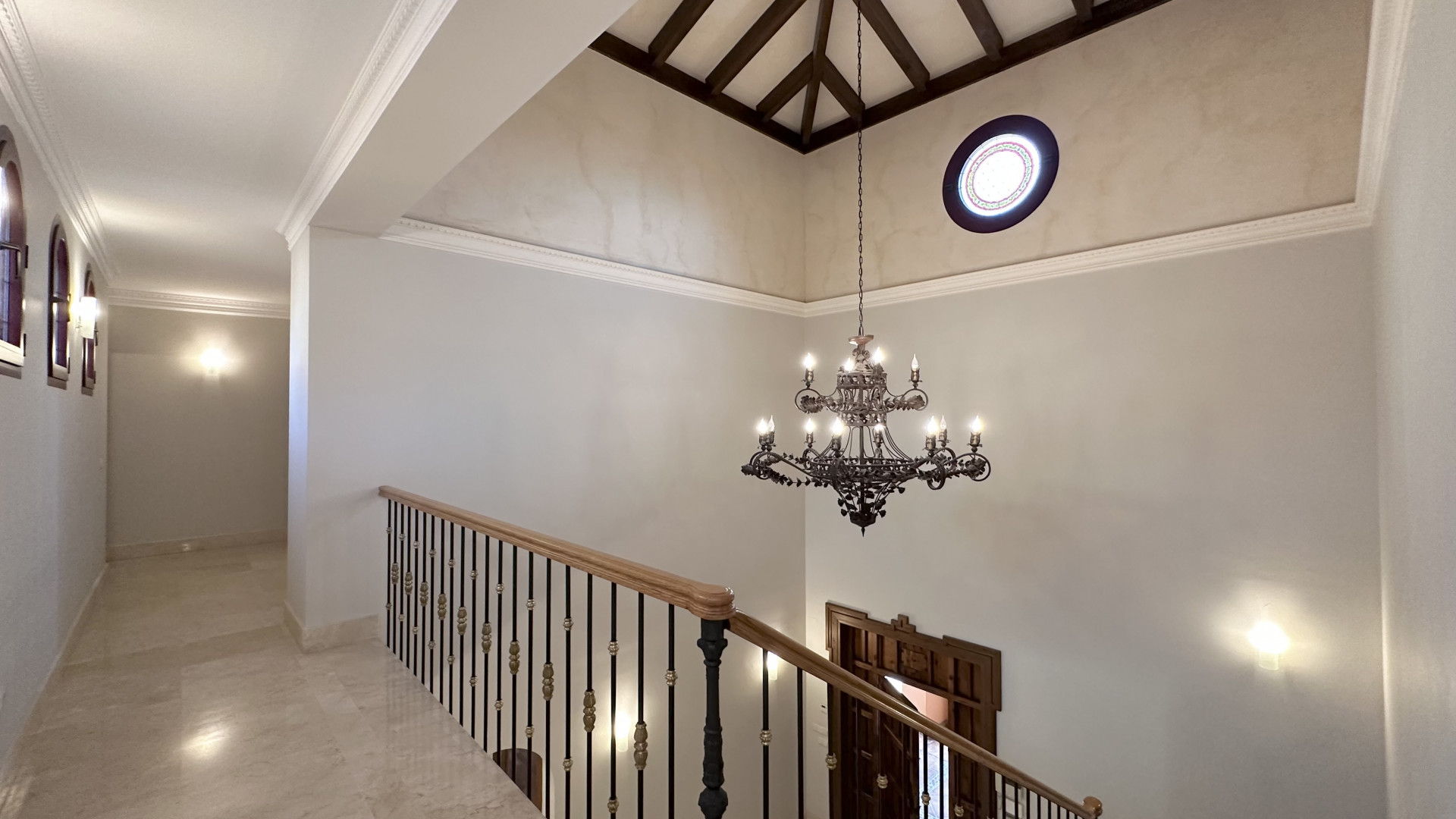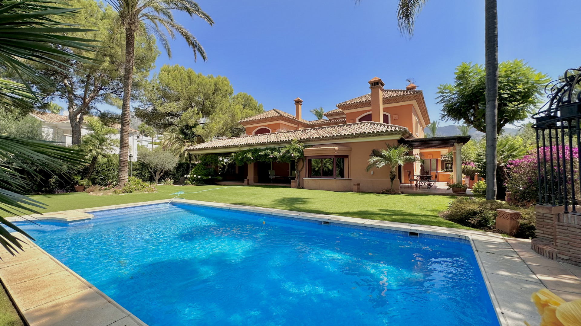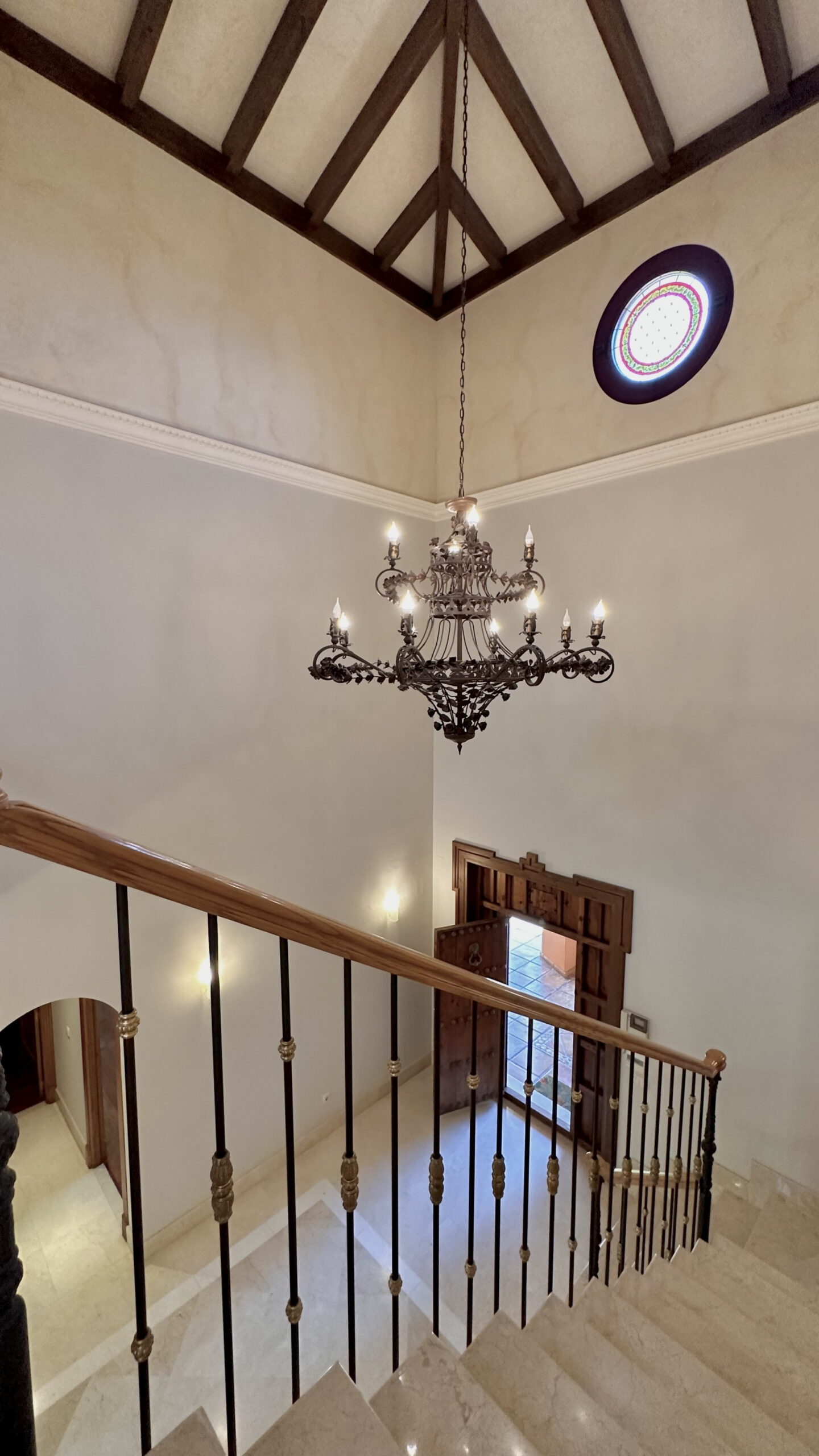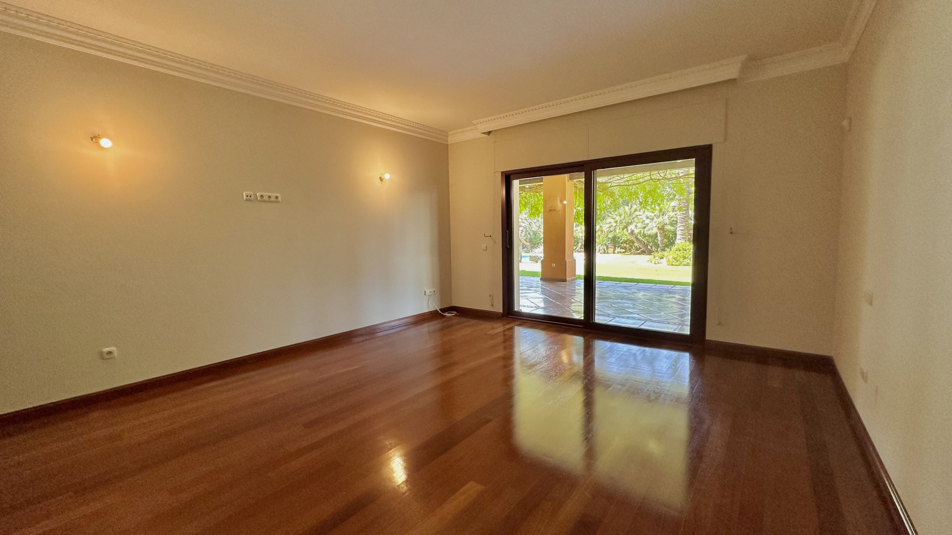 This villa is located in the prestigious and secure community of Altos Reales, Golden Mile Marbella. with 24h security, manicured gardens, paddle courts and children’s play area, within short distance to all aminities of Marbella and the beach. Very private property settled on a flat plot of almost 1500m2 with madure garden and good size swimming pool. The house offers comfotable entrance that leads to the covered garage for 2 cars plas carpor for another two. The villa is distribuited on 3 levels, on the ground floor there are, a spacious living room with the access to the cover large terrace and a garden that also leads to TV room, a guest toilet, a kitchen with utility room and pantry, a goos size master bedroom en suite. The upper floor consists of 4 bedrooms, 3 with their bathrooms, 2 bedrooms are with the access to the terrace. The Basement offers a living room with the cellar, another additional space to that could be addapted to personal tast, a toilet, billard room , a storage room, there is an access to the garden and BBQ area.