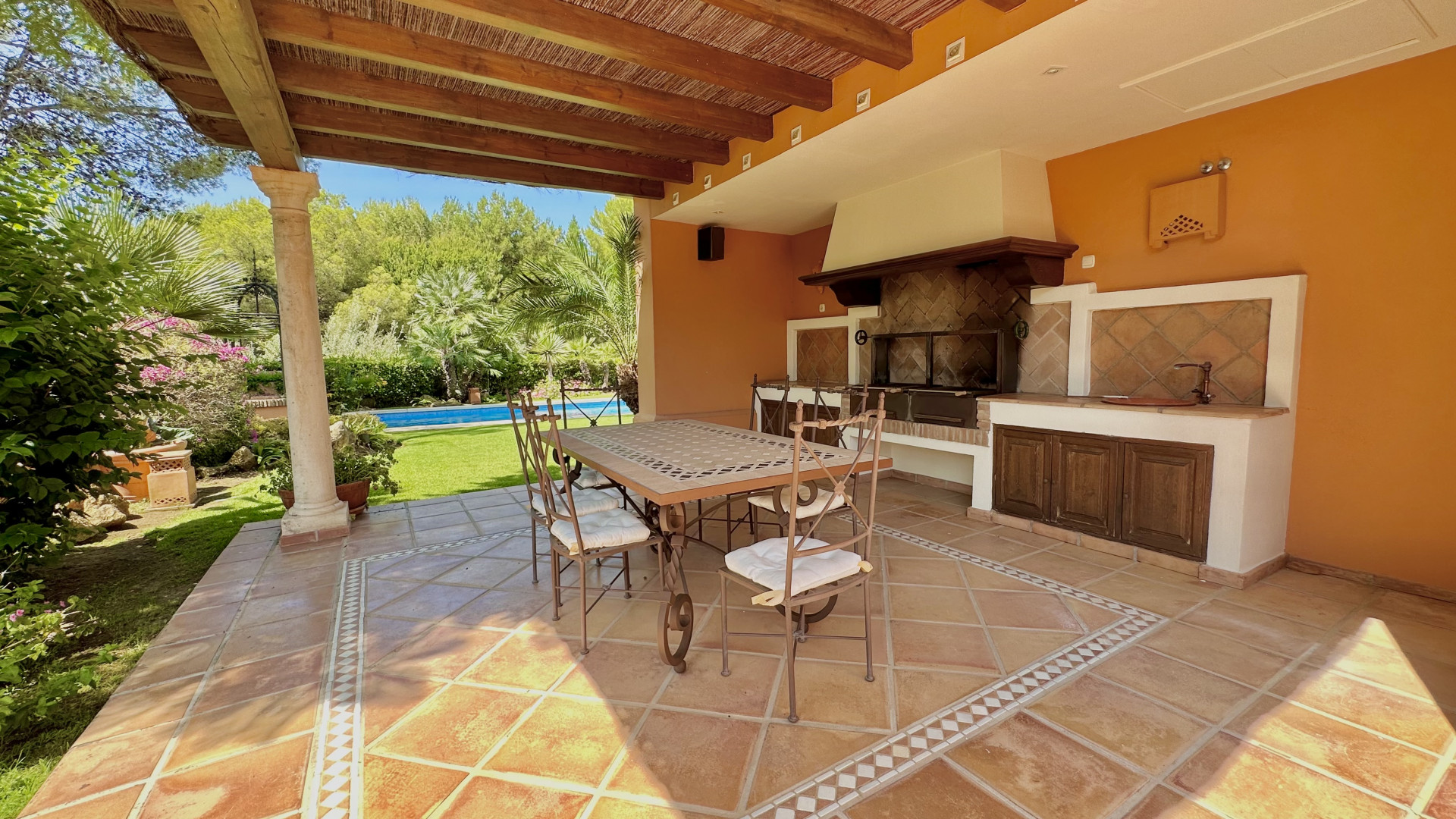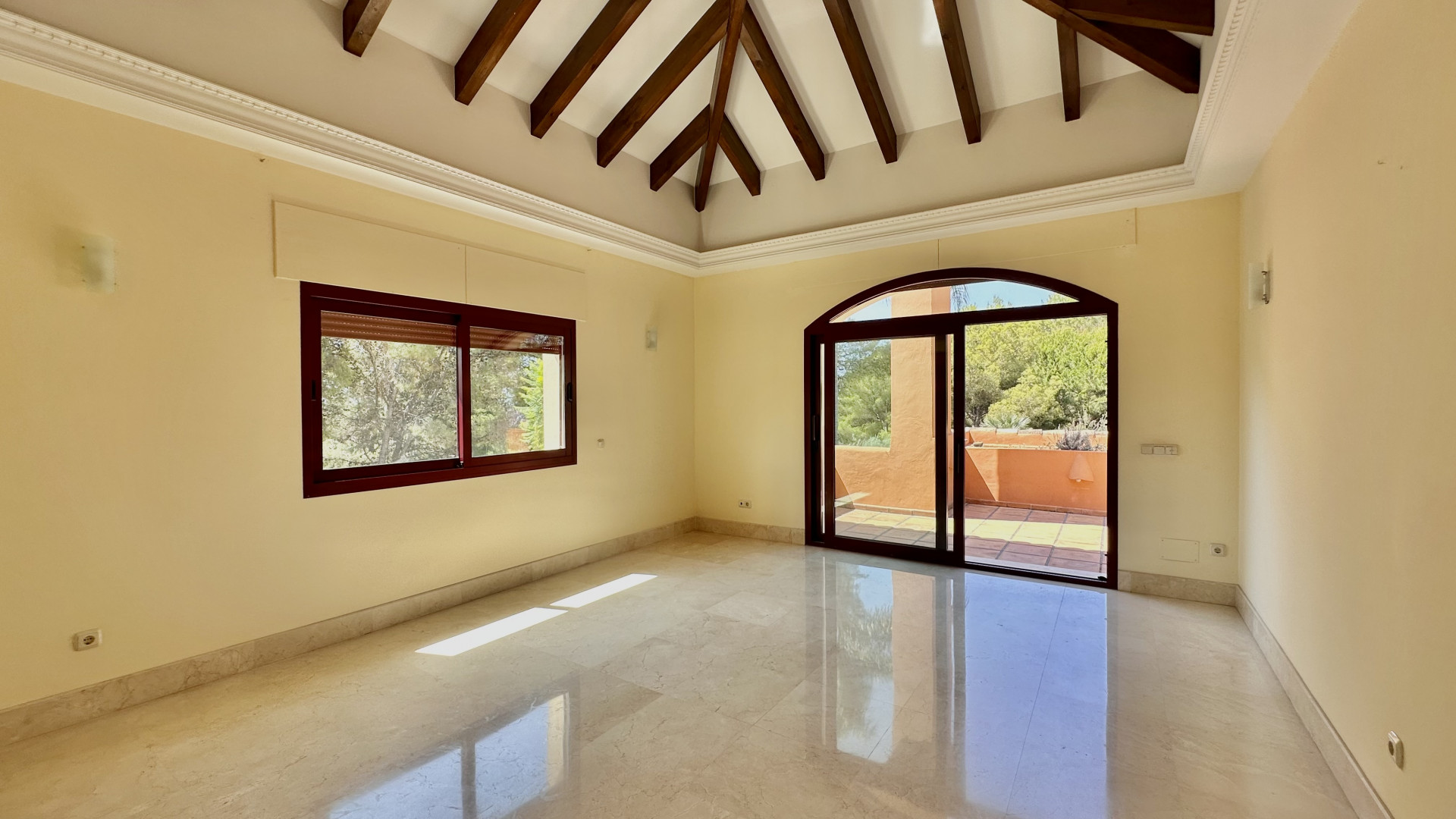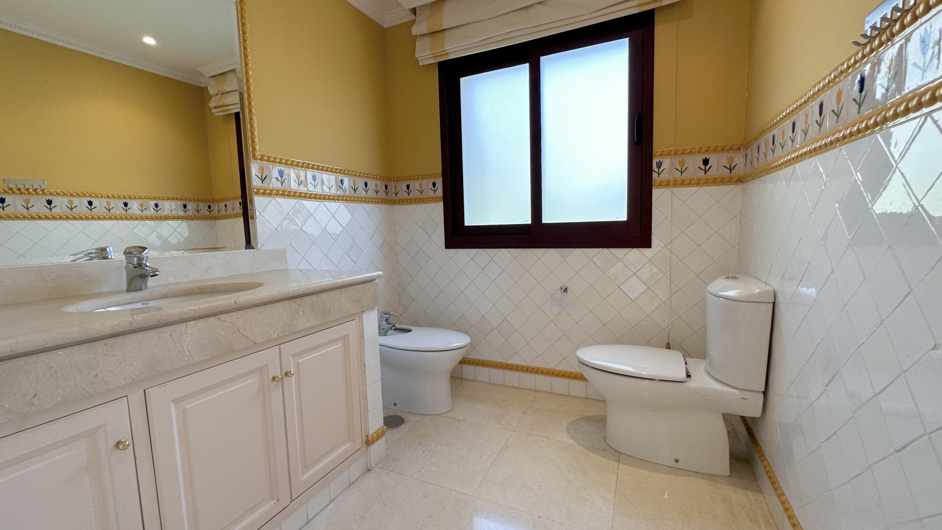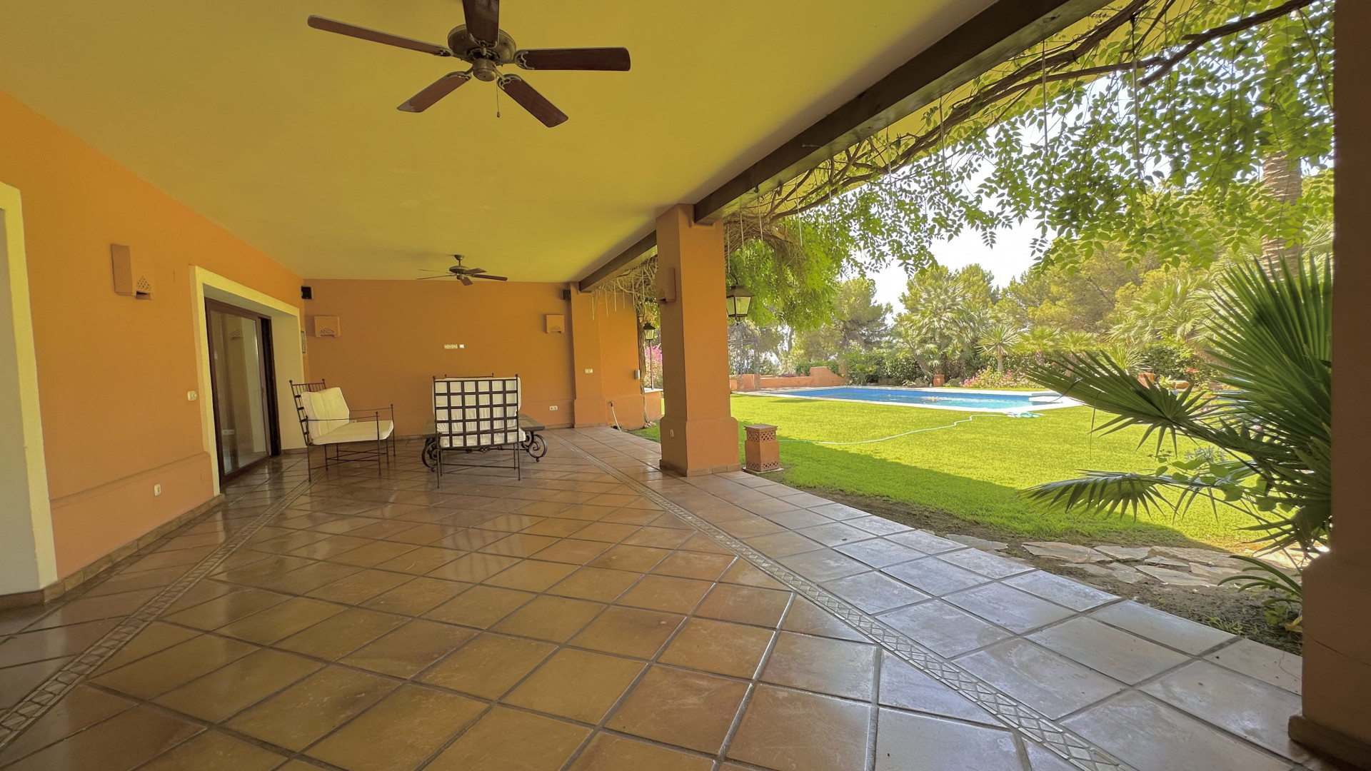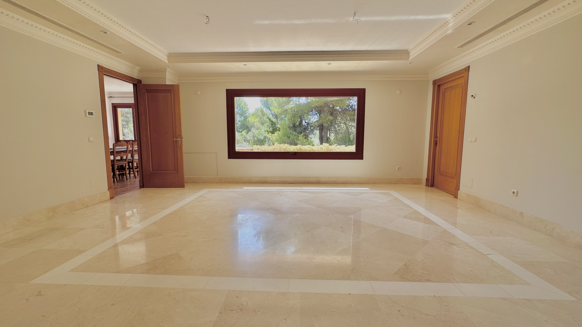 This villa is located in the prestigious and secure community of Altos Reales, Golden Mile Marbella. with 24h security, manicured gardens, paddle courts and children’s play area, within short distance to all aminities of Marbella and the beach. Very private property settled on a flat plot of almost 1500m2 with madure garden and good size swimming pool. The house offers comfotable entrance that leads to the covered garage for 2 cars plas carpor for another two. The villa is distribuited on 3 levels, on the ground floor there are, a spacious living room with the access to the cover large terrace and a garden that also leads to TV room, a guest toilet, a kitchen with utility room and pantry, a goos size master bedroom en suite. The upper floor consists of 4 bedrooms, 3 with their bathrooms, 2 bedrooms are with the access to the terrace. The Basement offers a living room with the cellar, another additional space to that could be addapted to personal tast, a toilet, billard room , a storage room, there is an access to the garden and BBQ area.